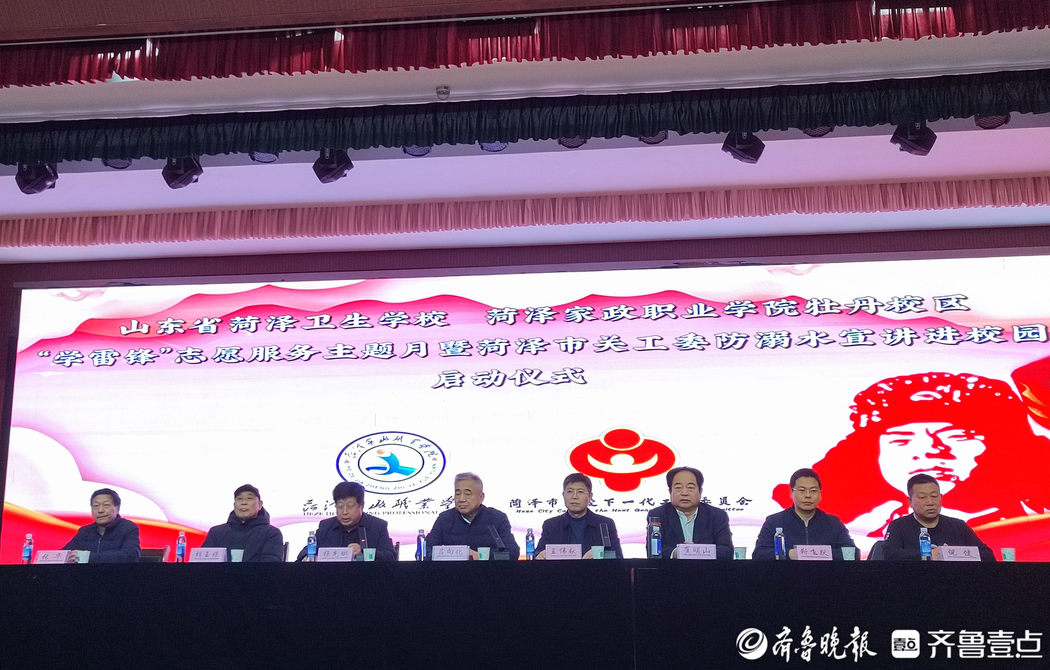 春风如约至,雷锋志愿行。在第61个“学雷锋纪念日”到来之际,3月5日下午,山东省菏泽卫生学校、菏泽家政职业学院牡丹校区“学雷锋”志愿服务主题月暨菏泽市关工委防溺水宣讲进校园启动仪式在牡丹区职教园报告厅举行。