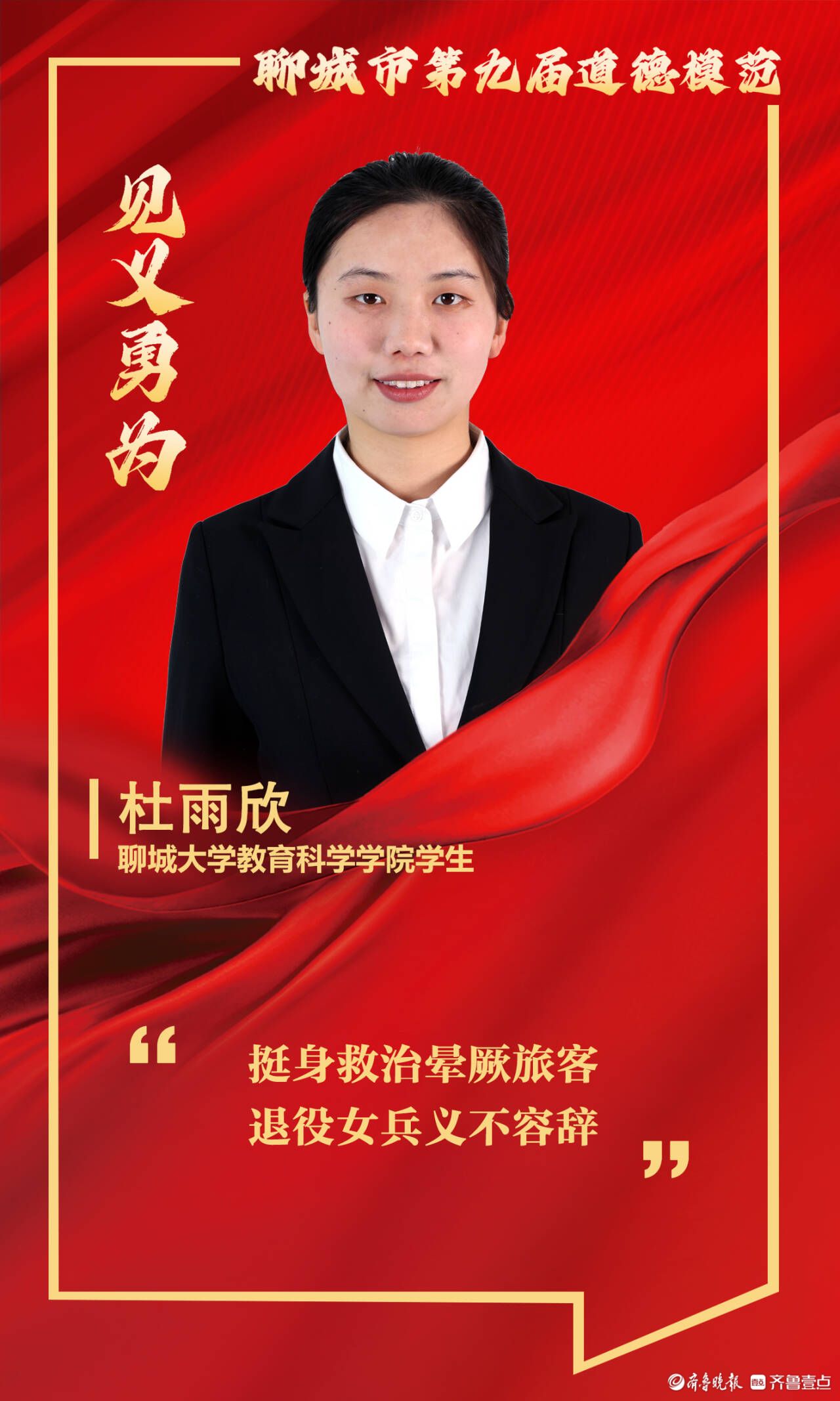 2022年9月18日,在成都东开往济南西的G1832列车上,一名乘客忽然晕厥。听到寻求帮助的广播后,当时退役返乡的杜雨欣立刻赶了过去,因为在部队有类似情况的处置经历,杜雨欣和同伴及时做出处理,担心呕吐物导致窒息,杜雨欣也一直在协助患者呕吐以保持呼吸通畅,最终帮助乘客成功脱险。杜雨欣以此荣立个人三等功,被人民日报等央媒集体点赞并报道。