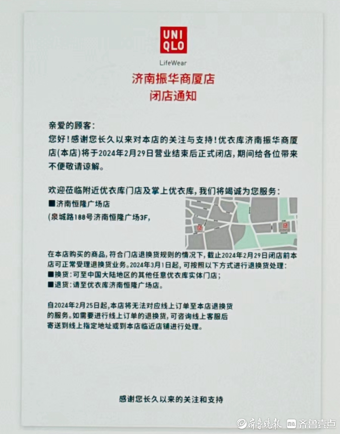 近日,济南振华商厦一层的优衣库门店关闭,这是继去年10月中海环宇城店关闭后,优衣库在济南关闭的第二家门店。来济十三年,优衣库为何会在不到半年的时间里连关两家店?