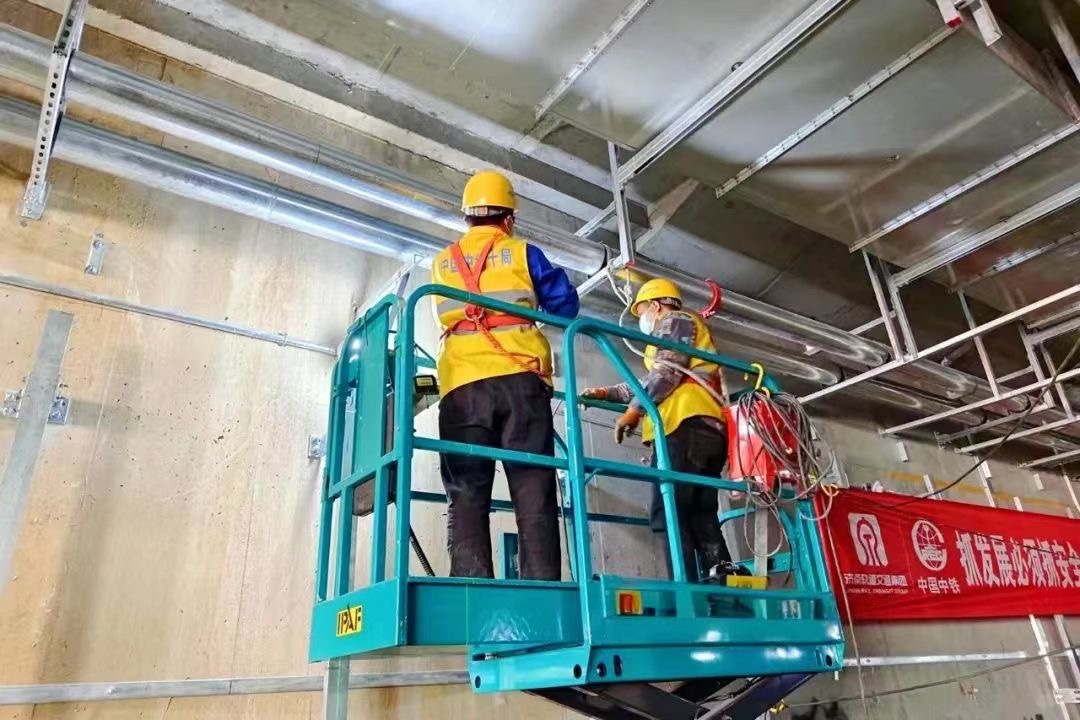 土建在地上进行,机电及装修也在地下保持同步。“目前在现场有110多名工人24小时倒班干,白天80多人,晚上30多人。为了保证工期,后续还要继续上工人。现在,临港站设备区砌筑已经完成,下一步工作就是管线安装、设备就位,设备单调以及联调联试的工作。”现场机电设备负责人李广海介绍说。