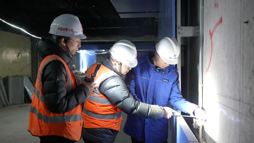 采访中,记者还遇到了运营公司通号工务部的工作人员张聪哲,他们一行5人负责检查工作,主要是查看建设过程中是否存在问题,然后及时反馈给施工单位,以确保后期地铁运营有序顺畅。张聪哲说,自从春节过后到现在,基本每周都会进行一次检查。