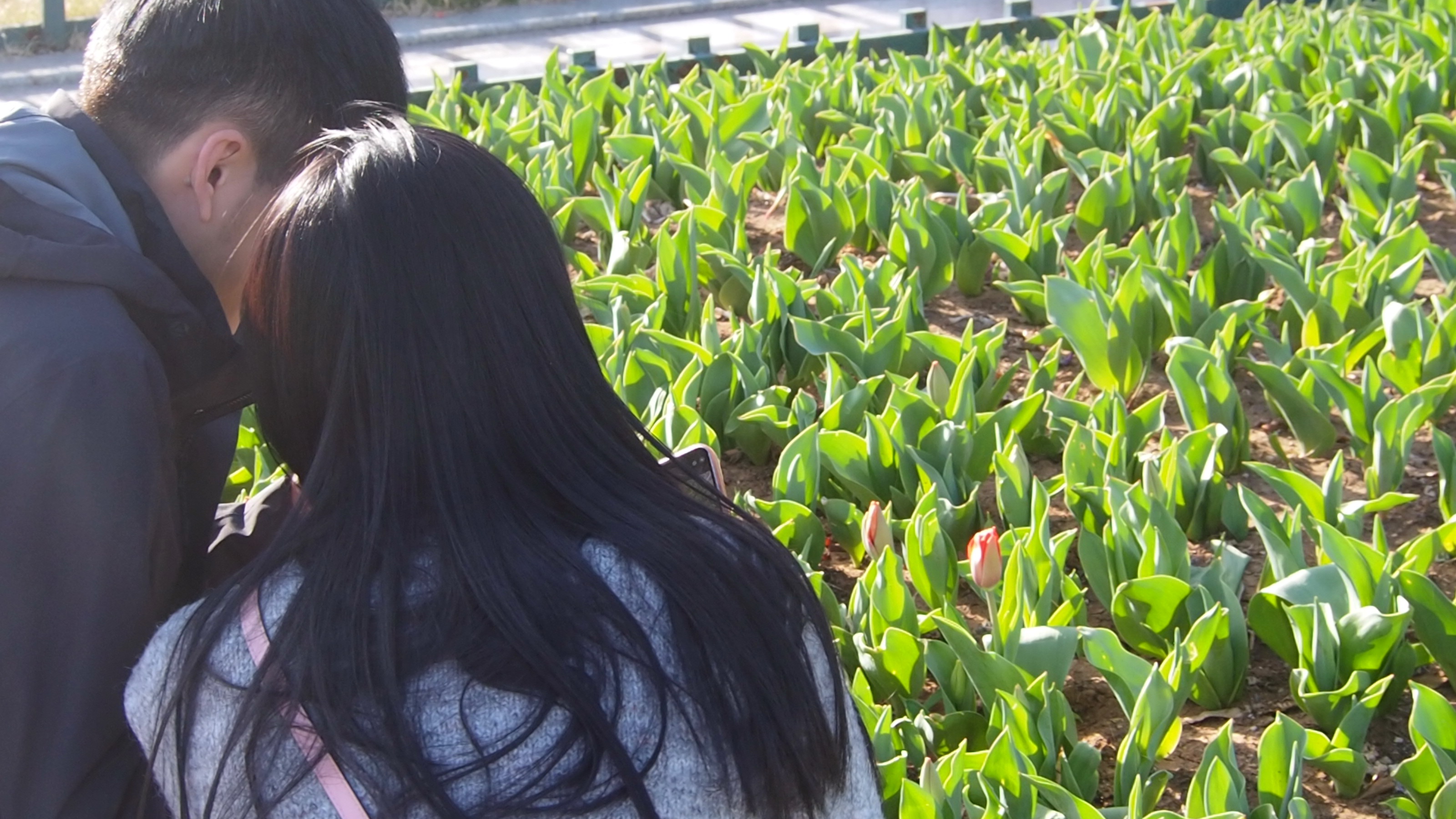 记者 周青先 3月19日,济南泉城广场西端的大片郁金香丛里,两三朵红粉色花朵含羞开放,在春风里微微颤动,姿态令人怜爱,引来不少游客。 当日济南春寒料峭,但春天的生命力无法阻挡。第一朵郁金香已经开始绽放,预计一周后就会是满园姹紫嫣红,景色令人惊艳。