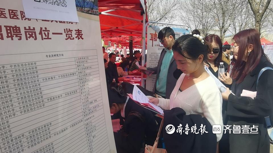 在3月23日的山东中医药大学招聘会上,各地人社局或卫健委组团而来的情况也不少见。淄博、滨州、枣庄、聊城都设置了招聘专区。