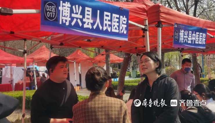 一旁的淄博市招聘专区规模则要更大一些,包括医院、医药企业在内的40余家用人单位组成了淄博专区。