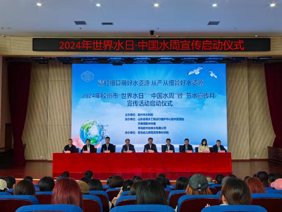 3月22日,胶州管理站与胶州市水利局、共青团胶州市委、胶州自来水公司等多家单位在青岛幼儿师范高等专科学校联合开展2024年“世界水日”“中国水周”宣传活动启动仪式。胶州市政府副市长徐栋良致辞并宣布启动仪式开始。启动仪式上,现场全体人员共同观看了影片《河长老彭》,通过河长巡河的故事激发共建共治共享美丽幸福河湖的行动自觉。此外,现场还设置了知识咨询、图文展示、手绘水利、趣味答题、转盘抽奖等环节,学校书法、绘画等社团组织及部分学生代表参与活动。活动紧紧围绕“精打细算用好水资源,从严从细管好水资源”主题,聚焦供水服务、水法科普、水环境改善、水生态提升等领域在校园进行节水宣传,进一步增强了大家节水护水意识。