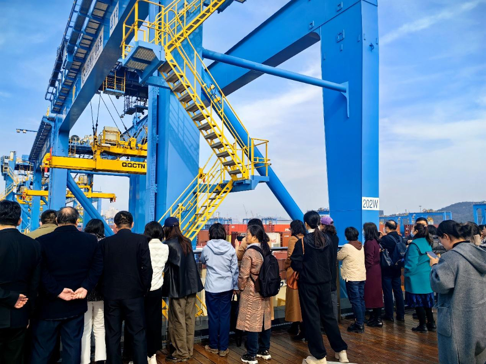 现场,一群年轻人高高举起手机记录着这一震撼的场景。他们是来自青岛科技大学的由70余名师生代表组成的“大思政课”实践团。他们来到山东港口青岛港自动化码头科技创新基地开展“场景大思政课”,现场感受青岛港践行科技自立自强,将关键技术牢牢掌握在自己手中,为世界港航业贡献全新“中国方案”的实践担当。