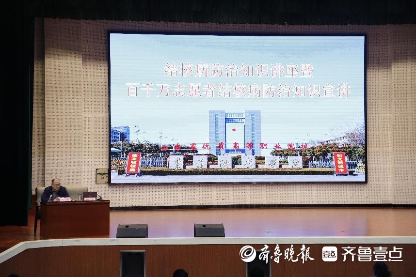 为加强枣庄职业学院志愿者队伍专业化建设,逐步完善志愿者服务体系,借助3.24世界防治结核病主题宣传日,3月19日下午,学院联合薛城区疾控中心和兴仁社区卫生服务中心在学院大礼堂举行“结核病防治知识讲座暨百千万志愿者结核病防治知识宣传”活动。学院党委委员、副院长王念出席并主持活动,学院200余名学生代表和40余名志愿者聆听此次讲座。