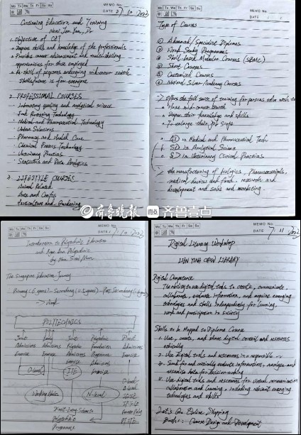 访学促借鉴,笃行以致远。韩安宁老师深知身上承载着学院的期待和希冀,非常珍惜此次难得的学习机会。新加坡访学期间,他积极参加学术研讨、技术交流、教学能力提升培训和教学实践等,日程排得满满当当,笔记记得密密麻麻,认真将所见所闻以及收获的成果进行归纳整理,积极开展经验交流,扩大受益面,将国外先进的职教理念和教学方法应用于日常教学和科研工作中,积极为学院内涵式高质量发展建言献策。