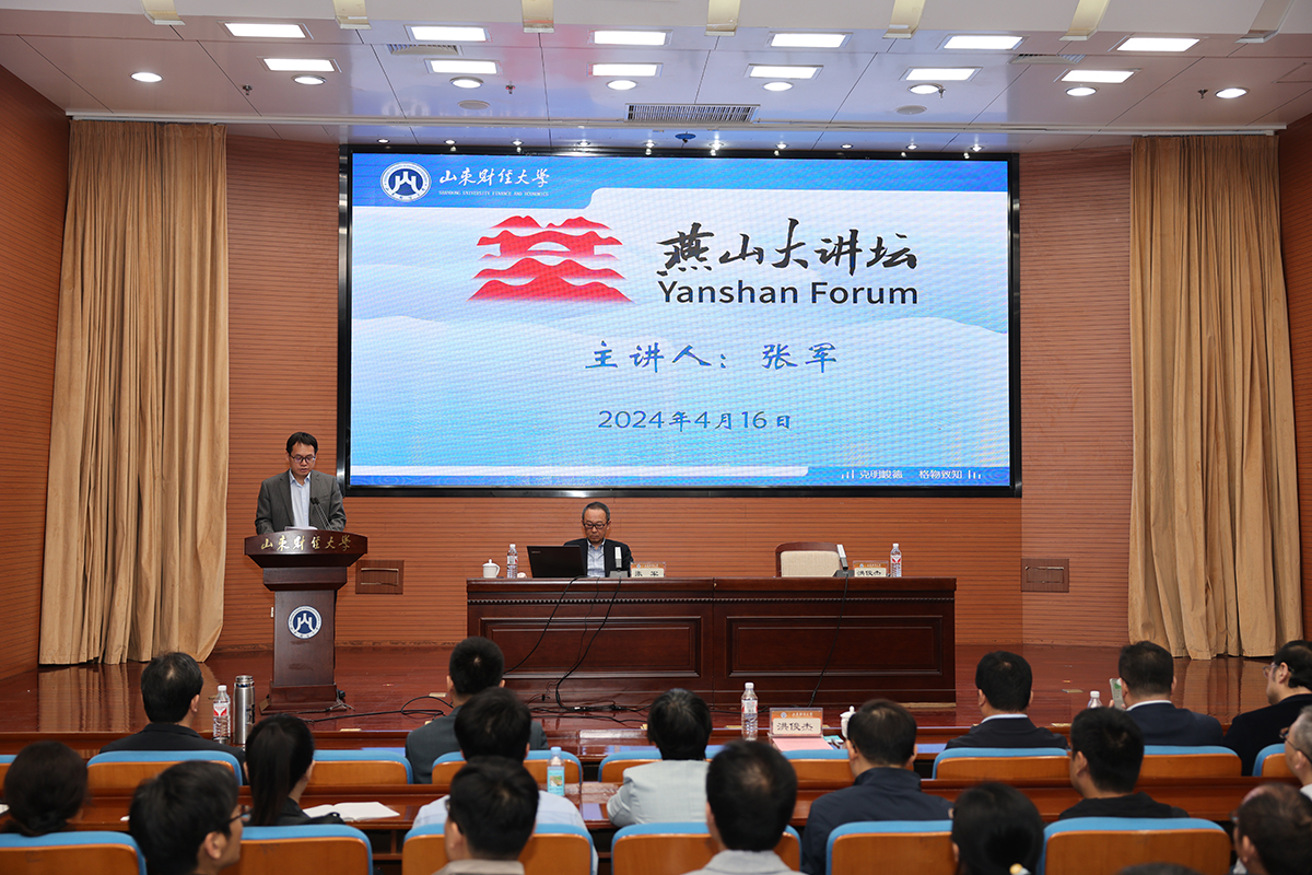 4月16日上午,山东财经大学首期“燕山大讲坛”在燕山校区和圣井校区同时举行。复旦大学文科资深教授、国家文科一级教授、复旦大学经济学院院长、中国经济研究中心主任张军教授作了题为《关于近年来中国宏观调控中的自主性原则》的学术报告。本期大讲坛由山东财经大学校长洪俊杰教授主持,学校相关职能部门负责人及师生代表七百余人聆听报告。