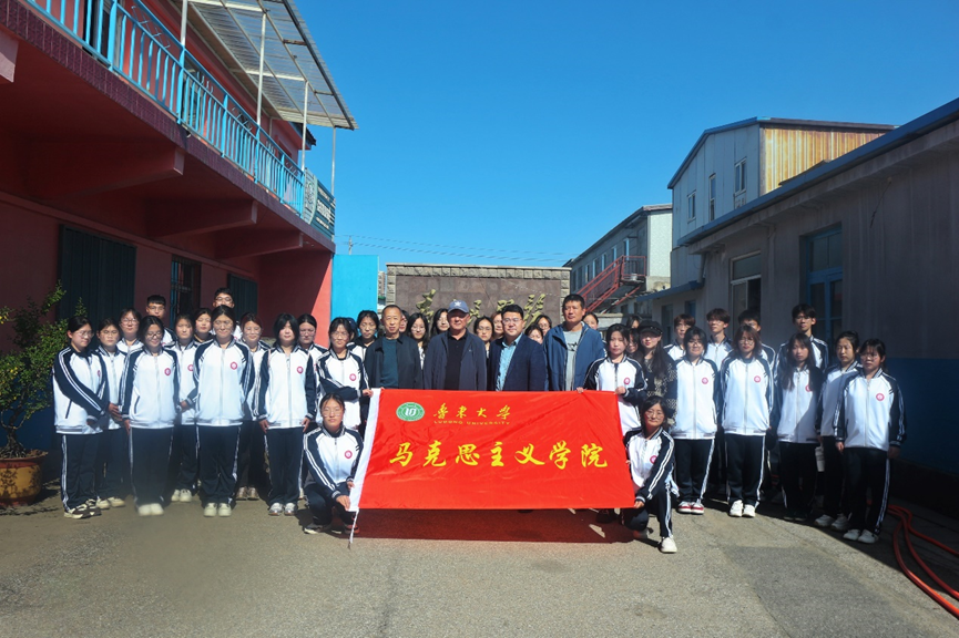 4月17日,鲁东大学团委书记张杰、马克思主义学院副院长孟军教授和“张广秀班”师生赴福山区垆上村开展行走的思政课暨实践基地揭牌活动。
