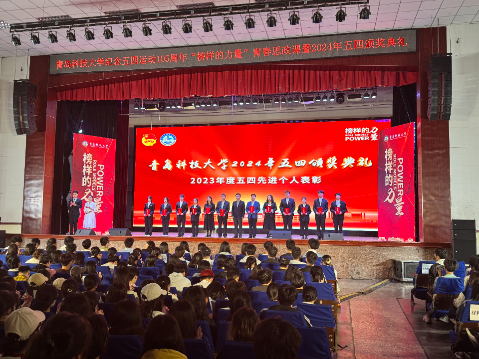 4月29日,青岛科技大学举行“榜样的力量”青春思政课暨2024年五四颁奖典礼,学校先进典型代表现场分享其奋斗故事,展现青科学子良好的精神风貌,号召全体学生不断砥砺前行,勃发青春风采。