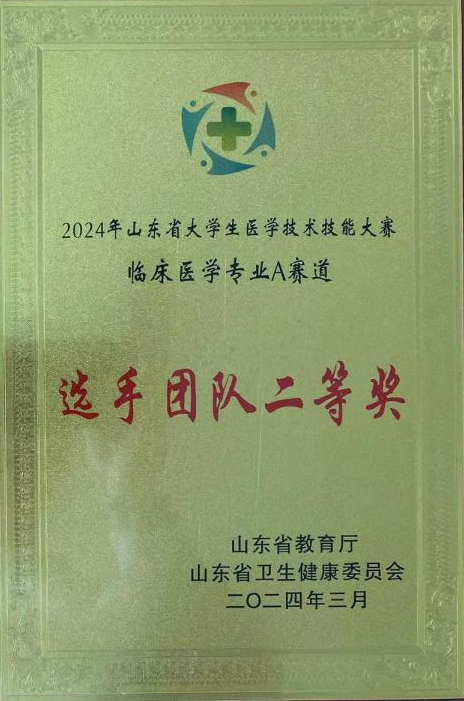 前期,由山东省教育厅、山东省卫生健康委员会主办的山东省大学生医学技术技能大赛在山东第二医科大学举行。同学们以饱满的精神状态参赛,经过理论与技能的激烈角逐,最终获得临床医学专业赛道A队团体二等奖,B队团体优秀奖,柳默雷等5名选手共获得6个单项金奖。