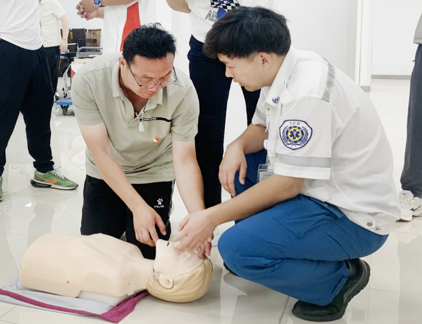 活动中,济宁医学院学生武术协会团支部的学生献上了精彩的八段锦展演,国家级社会体育指导员孙国强深入讲解了八段锦的历史渊源、功法特点及其健康功效,对每个动作的技巧和功理进行了详尽示范和阐述,参与者纷纷跟随练习,体验传统健身气功的魅力。济宁医学院附属医院医护人员为师生详细讲解了心肺复苏术的基本原理,现场演示了心肺复苏的整套流程,对胸外按压、开放气道、人工呼吸进行了重点讲解。师生通过人体模型亲身实践心肺复苏抢救步骤,领悟急救技术要领,进一步提高了应急救助水平及体育教学应变能力。双方积极互动,共同学习,收获满满。