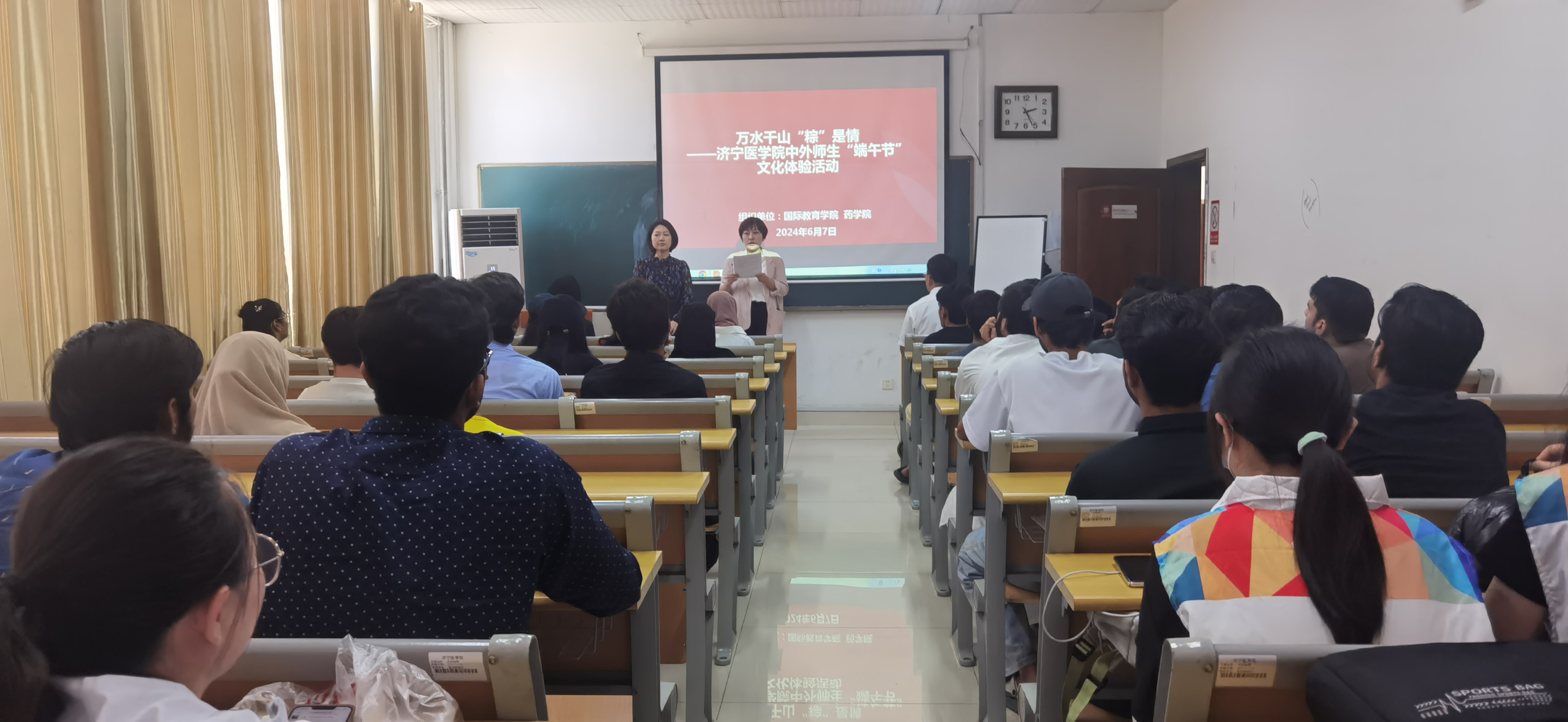 为增强来华留学生对中国传统节日文化的体验,促进中国文化传播和跨文化交流融合,丰富济宁医学院日照校区留学生的课余生活,6月7日下午,国际教育学院联合药学院举办中外师生端午文化体验活动。