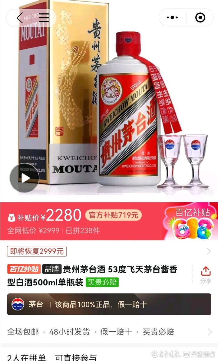 就飞天茅台酒价下跌一事,酒水行业研究者、山东省个体私营企业协会酒业分会秘书长欧阳千里认为,价格起伏往往有诱发因素,“比如,618电商大促,中间商们无利可图,便会拒收茅台或者以低价回收茅台,以致于传出茅台价格下跌的消息。不过在济南市场上,大部分飞天茅台单瓶成交价实际仍保持在2500元左右。”