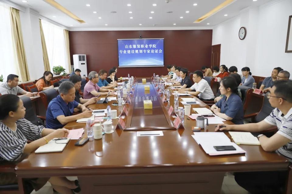 为科学规划学院专业发展,6月12日上午,山东服装职业学院邀请中国纺织服装教育学会会长倪阳生、山东省职业技术教育学会会长石忠、江苏省高等教育学会秘书长邓志良、温州职业技术学院设计学院院长章瓯雁及山东岱银纺织服装集团、泰山玻璃纤维有限公司、山东网商科技集团、泰安万达嘉华酒店企业代表,就如何做好专业建设与规划工作进行论证指导。学院党委书记郝燕,党委副书记、院长马培安,党委委员、副院长殷广胜出席活动,教务处、招生与就业指导办公室、对外合作处负责同志参加论证活动。会议由殷广胜主持。