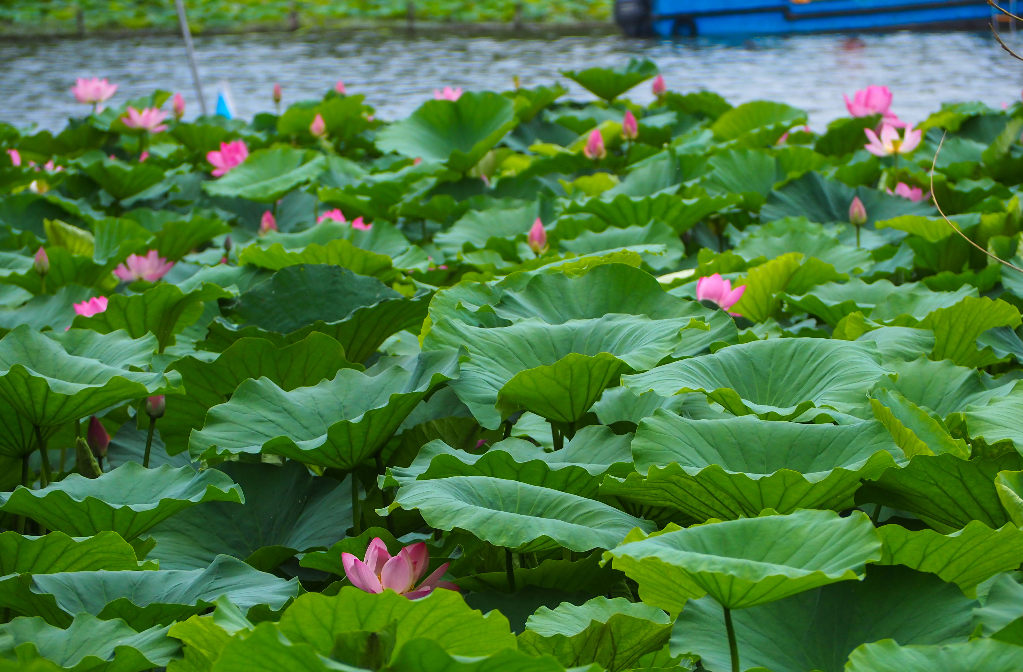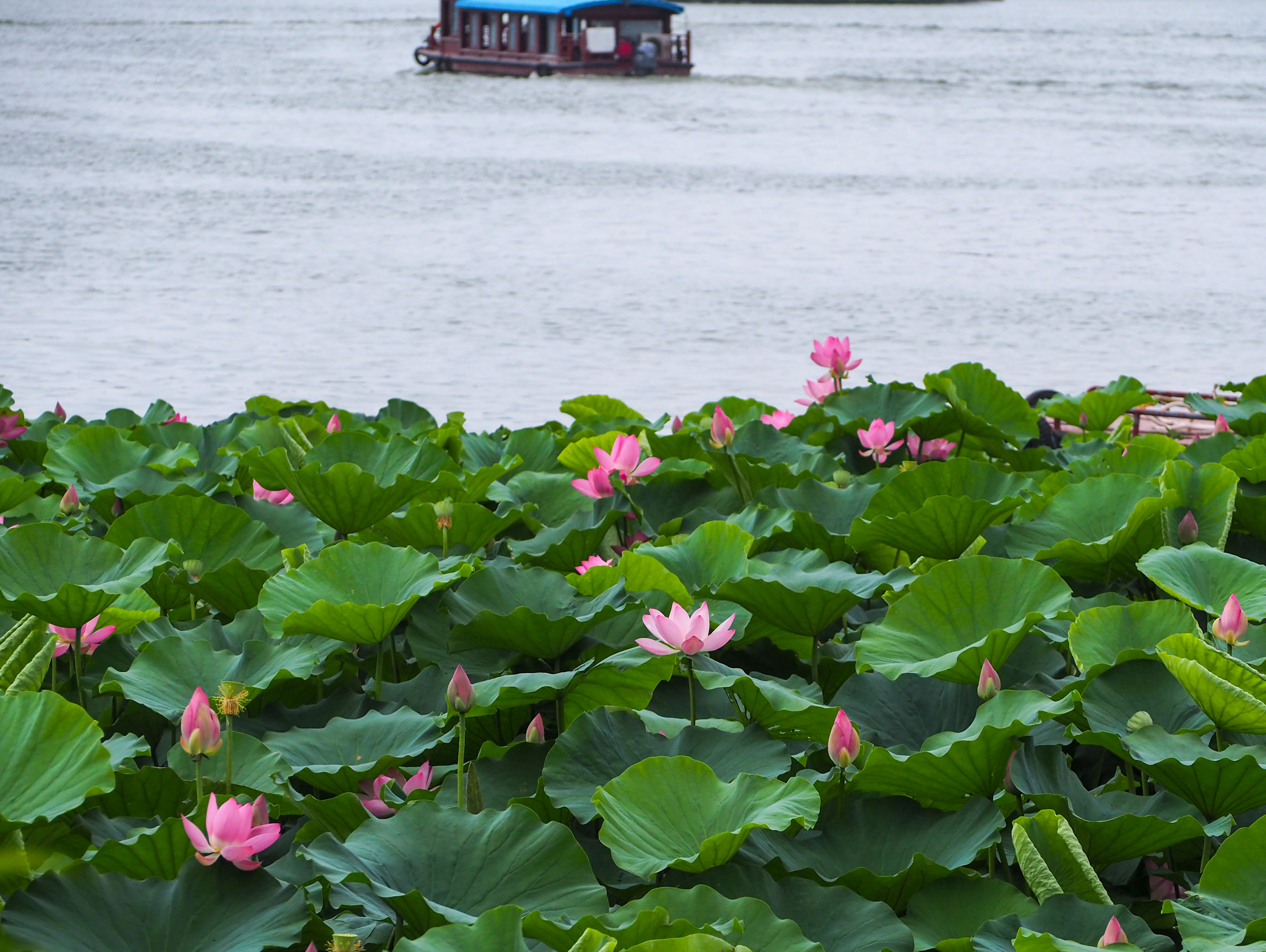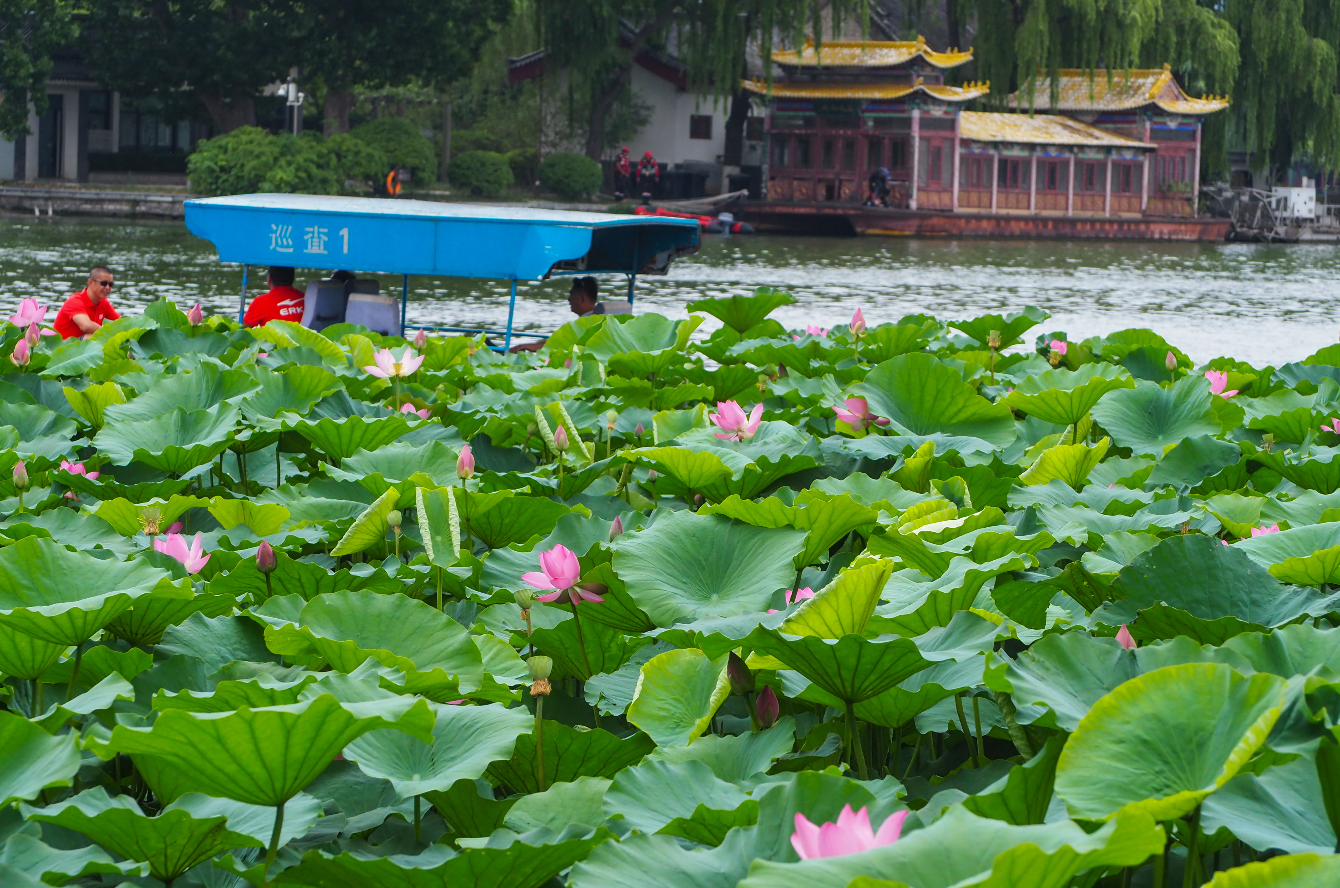 6月16日,济南大明湖景区,盛夏的荷花灿烂怒放,几十个品种艳丽多姿,迷住无数游客。
