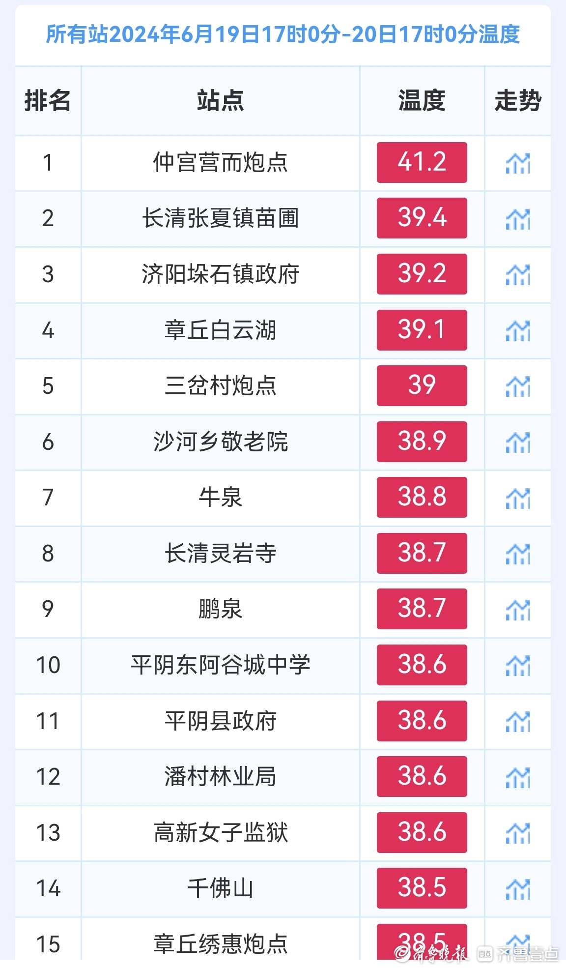 连日来,济南“热度”持续在线,济南市气象台6月20日16时继续发布高温橙色预警信号。同时,监测数据显示,6月19日17时至20日17时,济南各站点中最高气温达到41.2℃,出现在仲宫营而炮点站点。