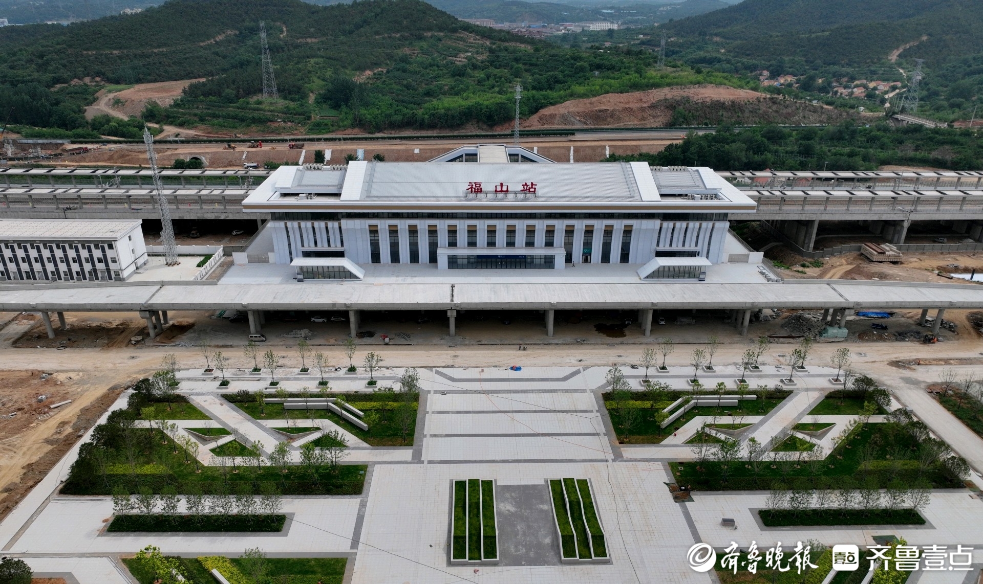 福山站,建筑面积为10000平方米,站场规模2台4线,车站位于烟台福山区东厅街道儒林沟村。建筑设计以“千年古邑,三乡福地”为立意,建筑造型取自当地传统建筑形态。
