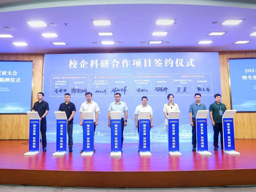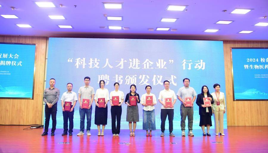 大会进行了生物医药创新联合体揭牌仪式和校企科研合作项目签约仪式,为“科技人才进企业”代表教师、药学院理事会学科专业专家咨询委员会颁发聘书。