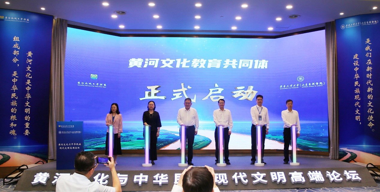开幕式上,沿黄高校发起成立黄河文化教育共同体的倡议,曾宪文、赵秋丽、孔春才、张玉梅、吴衍涛、刘玉等共同点亮黄河文化教育共同体启动柱。