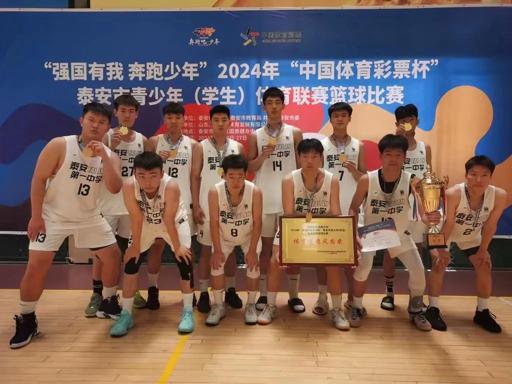 通讯员 武杰 在刚刚结束的“强国有我,奔跑少年”2024年“中国体育彩票杯”泰安市青少年(学生)体育联赛篮球比赛中,泰安一中篮球队以全胜成绩荣膺冠军,并获得“体育道德风尚奖”。 比赛过程中,泰安一中篮球队战术明确,配合默契,展现出强大的实力和良好的团队协作精神。 泰安一中坚持全面育人,重视综合素质发展,为学生提供系统科学的训练指导,创设丰富的比赛平台,引领学生在运动中享受快乐,在比赛中锻炼成长。