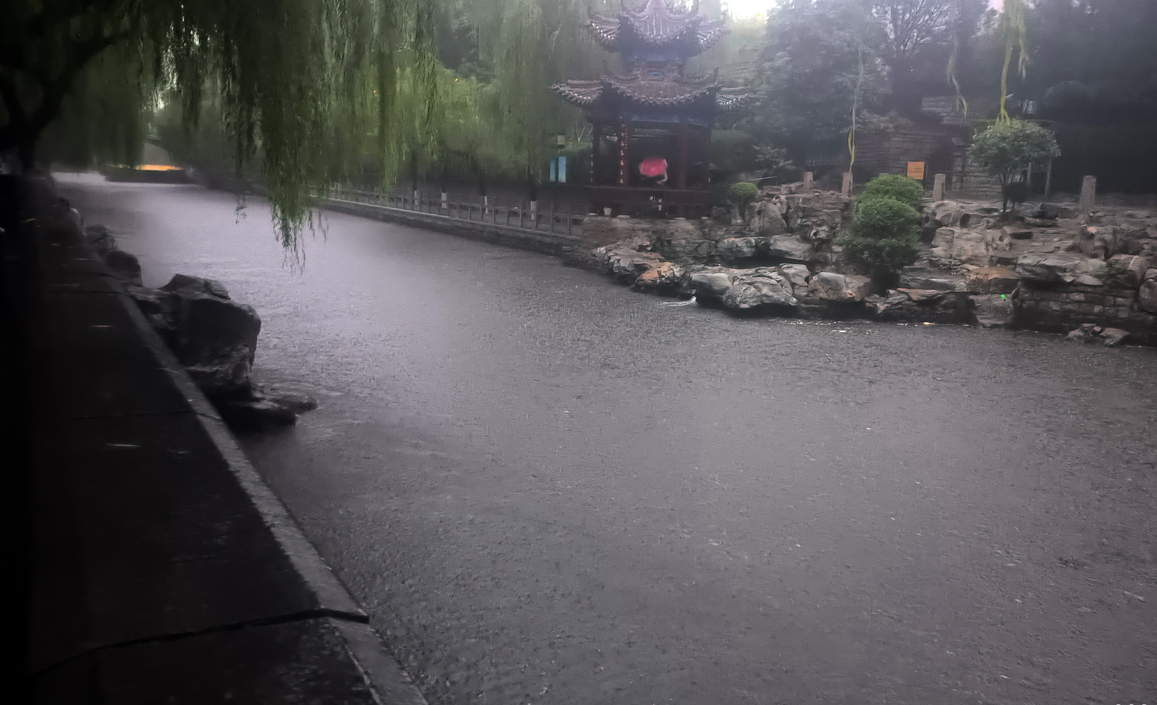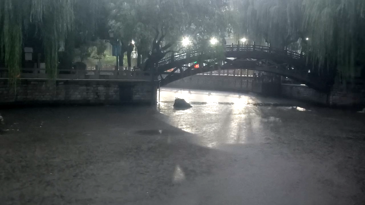 周青先 济南报道 7月5日傍晚,济南大雨倾盆,城区大量雨水直接流入护城河。护城河黑虎泉附近水流湍急,雨水向东北方向急速流去,水位比中午下雨前高了不少。 每逢下大雨前,济南的护城河两端闸门都要提前打开放水,就是为了应对这种暴雨天气水量剧增的情况。 而黑虎泉水量见长,喷涌势头明显精神了很多。