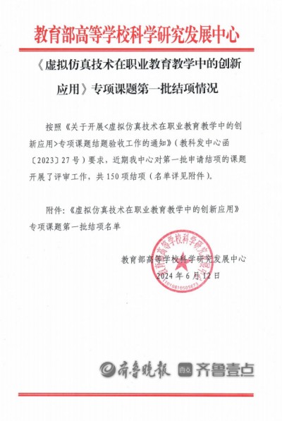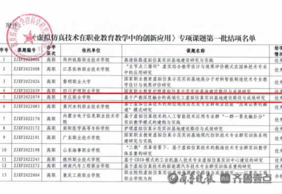 该项课题获得教育部认可,填补了枣庄职业学院国家级课题的空白,也为国家“双高计划”院校的创建又增添了一项国家级成果。