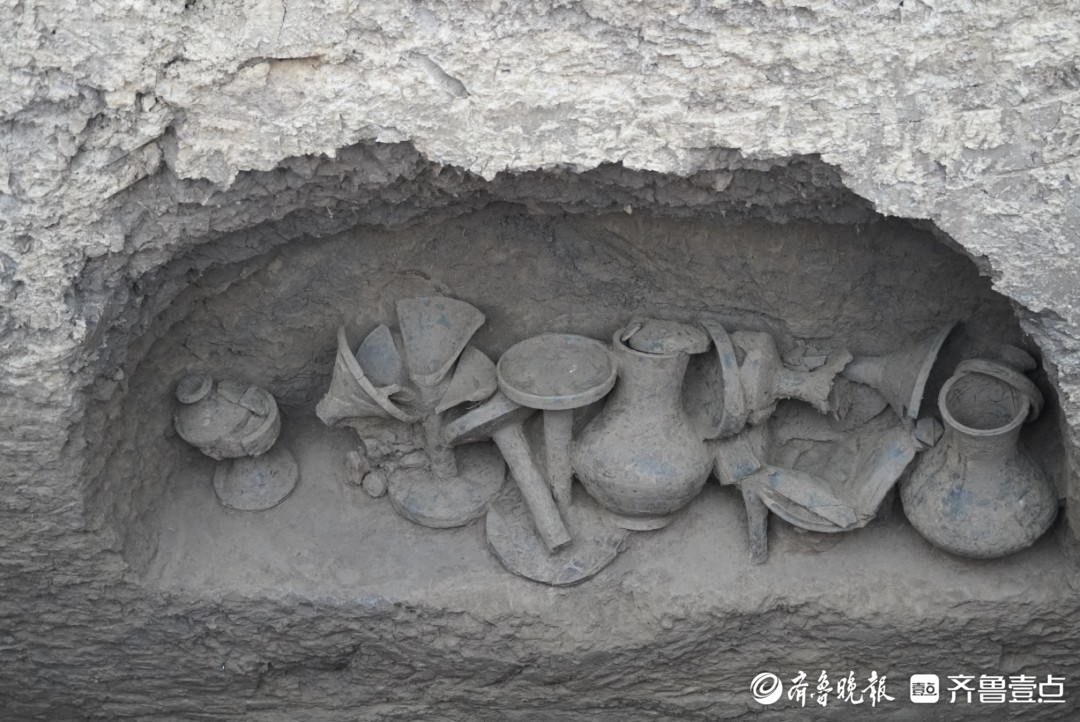 据悉,2021年6—9月,济南市考古研究院对墓地进行了初步发掘,共清理战国至清代墓葬38座。2023年6—12月,为配合土地出让,经国家文物局批准,济南市考古研究院对墓地再次进行发掘。本次发掘共清理各类遗迹314个,其中墓葬301座、窑2座、灰坑3个、水井8口。出土完整及可复原器物860余件(组),主要器形有陶罐、陶壶、陶耳杯、陶盘、陶鼎、陶盂、陶豆、铜钱等,另有少量陶匜、陶樽、陶圈厕、瓷罐、瓷碗、铜镜、铜剑、铜铍、铜戈等。