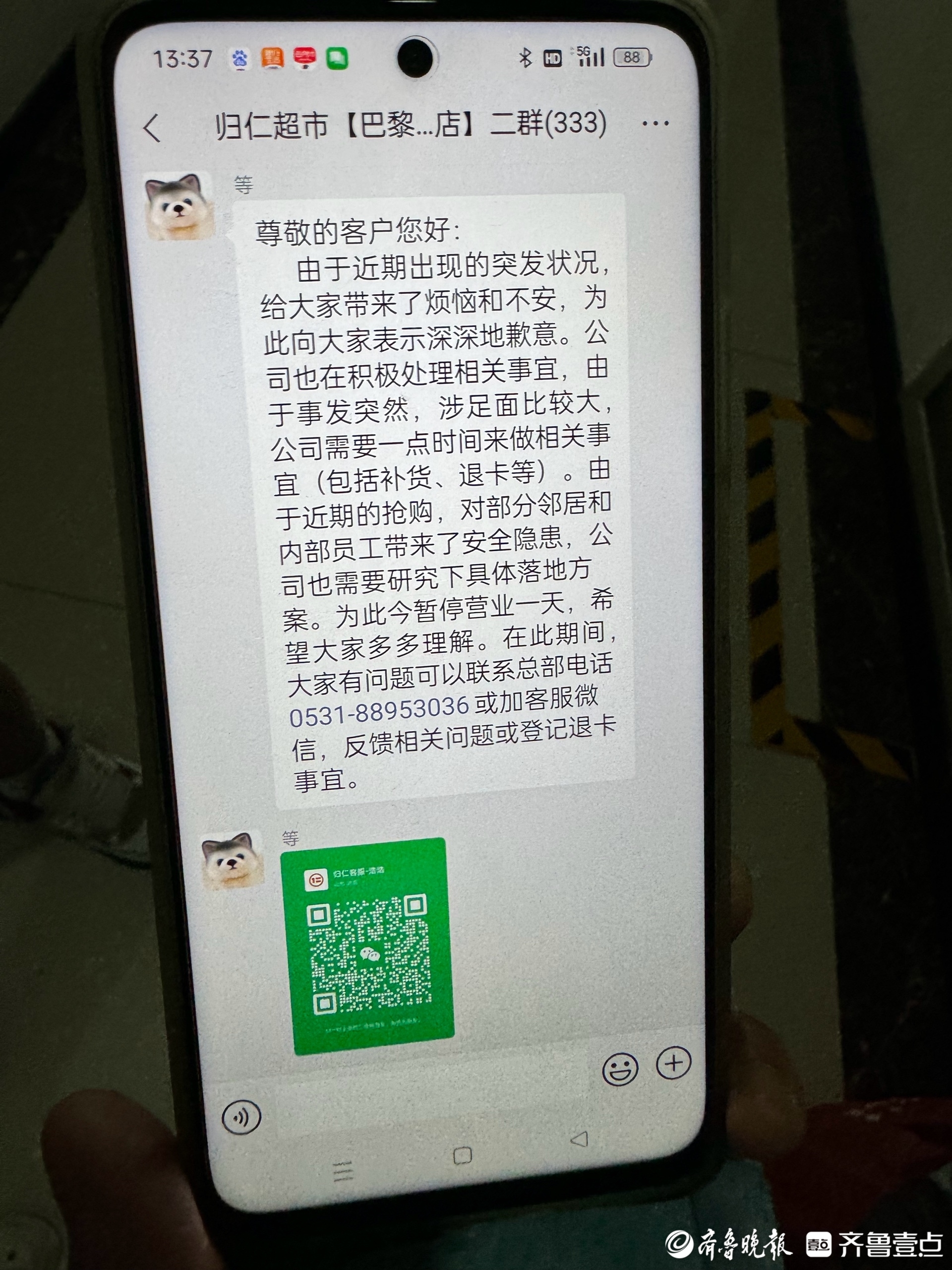 “从上周五开始,各个超市突然出现了哄抢的情况,现在24家直营店全都关了。”归仁超市一家直营店店长告诉记者,关店比较突然,具体原因他们也不清楚,后续是否继续经营和退卡处理都要等公司通知。“公司还欠我们一个月工资,如果想退款可以先联系各门店店长登记。”