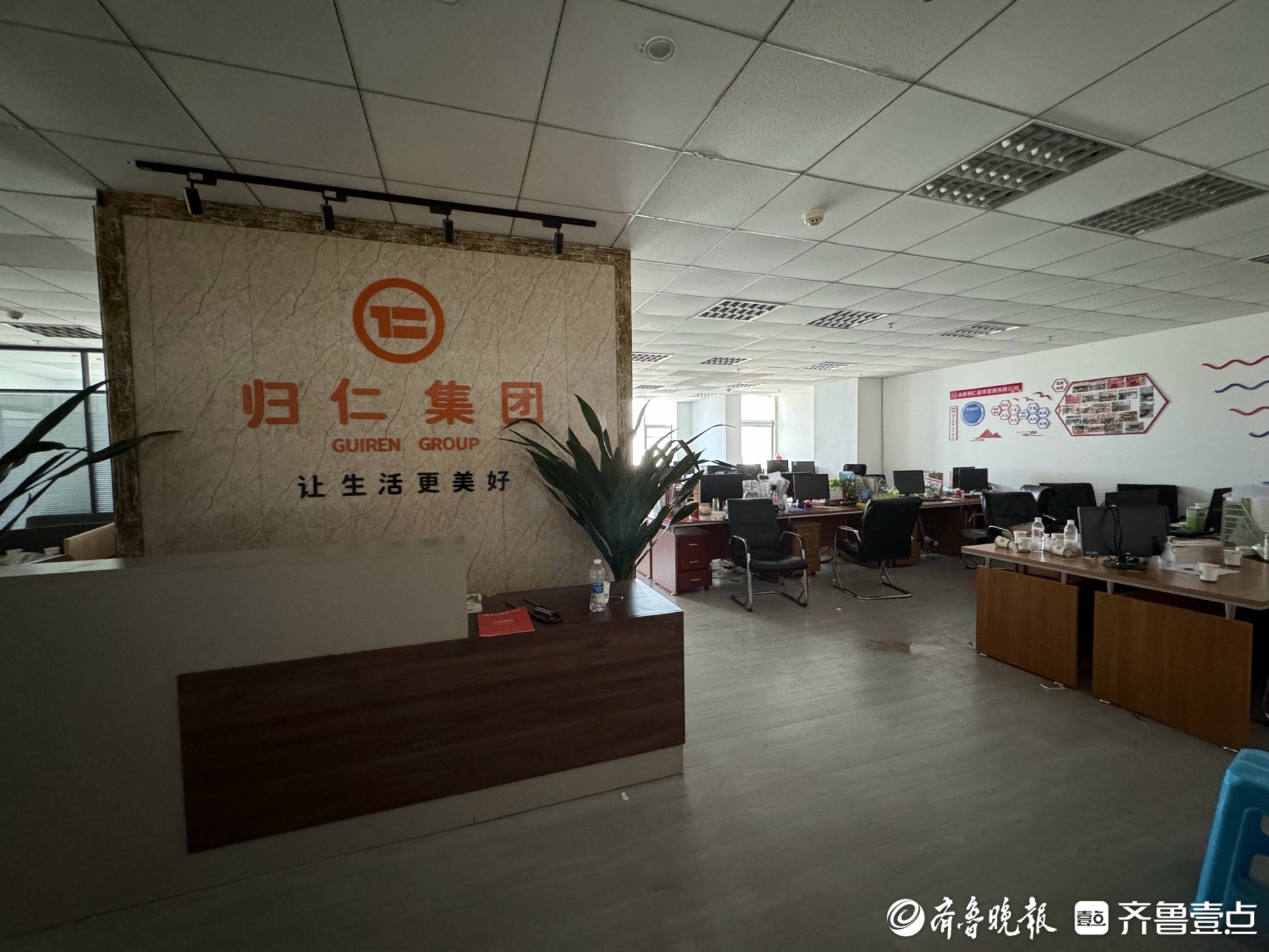 记者走访发现,701办公室处于开放状态,这里悬挂的“归仁集团”四字大字仍旧十分醒目。记者在现场注意到,办公室内部一片混乱,地面散落着公司宣传册、纸团和垃圾。办公桌上只剩部分电脑屏幕、办公文件和员工个人物品,电脑主机均已搬走。