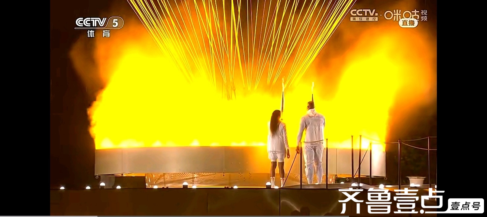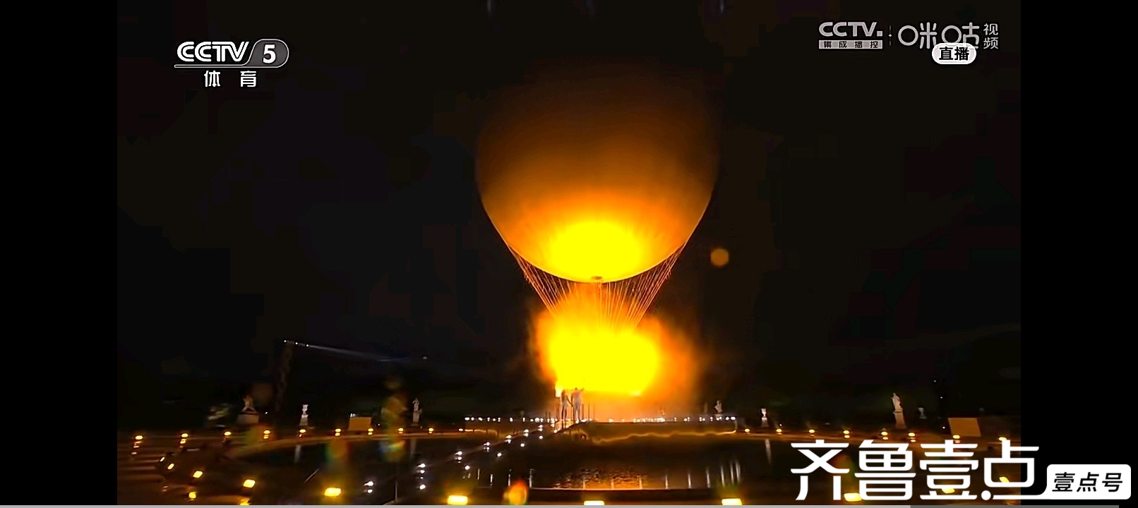 一切准备就绪,也一点二十多了,我端坐好,看奥运就要有仪式感。但是开幕式却不像我想象中那么隆重,有点娓娓道来的感觉。一个穿白袍头上戴白帽子的蒙面人,手握中间粗两端细的奥运火炬手飞檐走壁,像极了我国以前的黑衣夜行人,听解说是个挺出名的跑酷爱好者。在火炬手的穿行中,带我们领略了法国的蒙娜丽莎画像,思想者。塞纳河两岸,是观众席及表演区域,塞纳河上,各国运动员乘坐大船在希腊之后依次出现,有的四五个国家一条船,有的参赛队员多的国家两三个国家乘坐一条船。这样露天的在河流上举办的流动式入场仪式,也只有浪漫的巴黎人想的出来。船只经过之处,我们看到了塞纳河两岸的风光,有凯旋门、巴黎圣母院、埃菲尔铁塔……水里依次排开几个大大的头像,那头像的嘴巴大多没过水。由于有的几个国家运动员在一条船上,不像以前的一个国家一个国家的出现,令解说员有点忙不过来。在船只行进中,看到了一侧的表演,演员们每人手里拿着两把羽毛扇子,从河岸上边沿着台阶缓缓走下来,他们不断变换队形,两把扇子一会放在腰间,一会举在头顶,像一只只彩色的鸡。看不懂表演的啥,只能说,外行看热闹,内行看门道。正在迷糊时,儿子说:“妈,你看那不是咱们中国运动员吗!”定睛一看塞纳河船上,还真是,看!那一片中国红!中国运动员手拿五星红旗,脸上洋溢着笑容,个个精神抖擞。护旗手是乒乓球运动员马龙和花样游泳运动员冯雨。