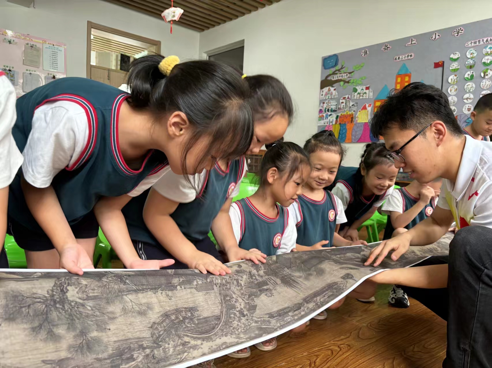 7月19日,宣讲团走进“中国十大最美乡村”之一的常山庄村,开展了《中国古代山水画的人文寄遇与文化价值》和《中国古代绘画》2场绘画宣讲活动。团队成员带领小朋友们一起赏析了《千里江山图》《踏歌图》等中国古代著名的山水画,以及《女史箴图》《洛神赋图》等花鸟画,让他们感受到中国绘画的博大精深。宣讲结束后,志愿者组织小朋友们围绕自己的家乡常山庄村,画出他们自己心中最美的风景,通过对优秀作品《柿柿如意》和《一村山水》的赏析,让小朋友们在感受家乡美的同时也体验到了绘画艺术的魅力。