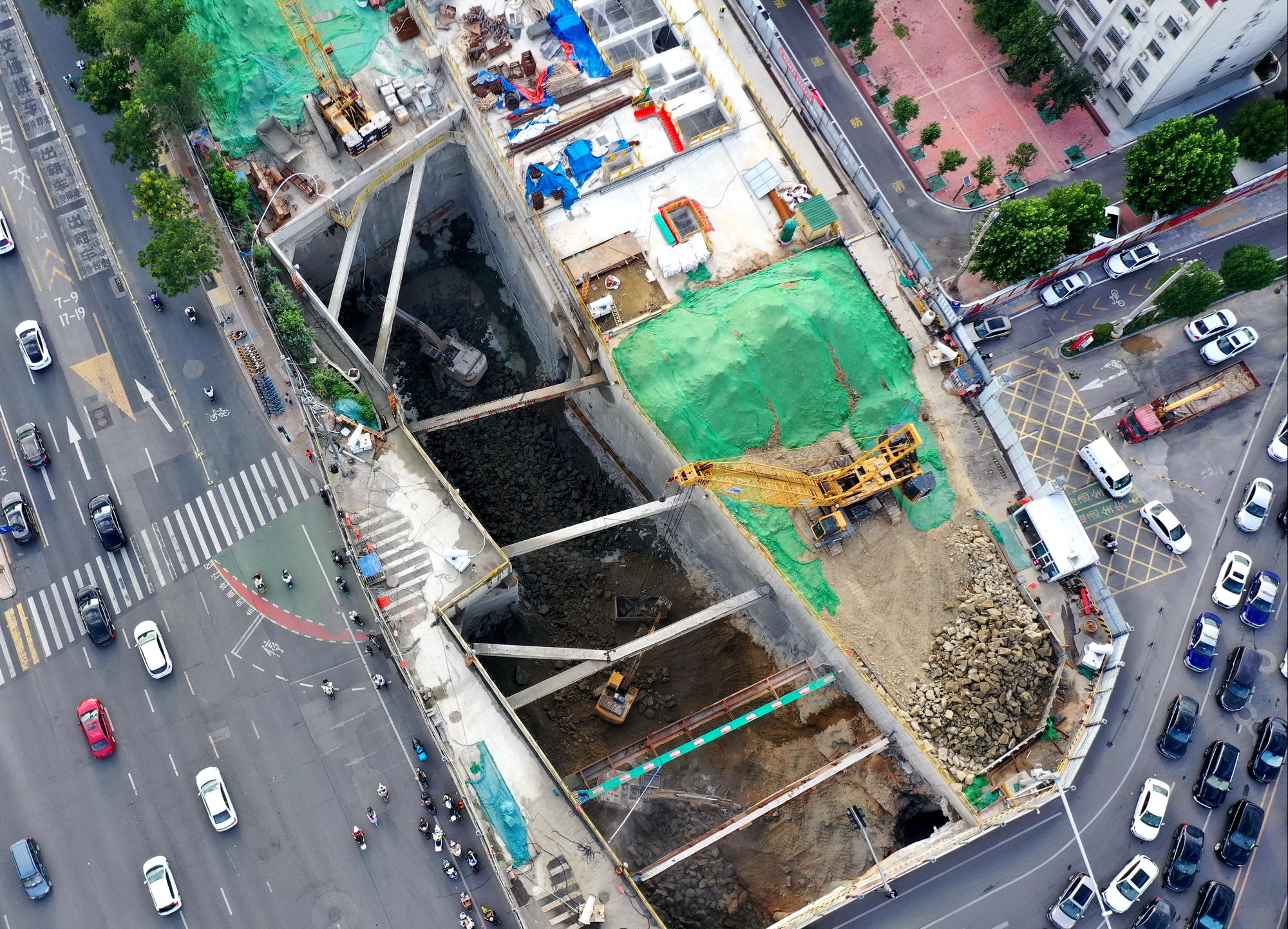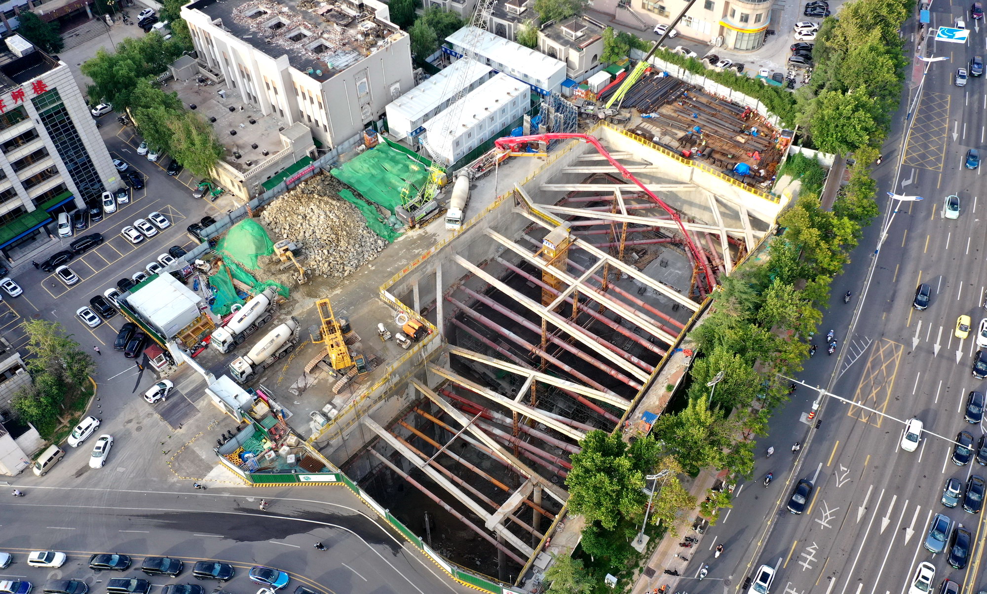 8月1日,航拍正在施工的济南地铁4号线山大路站工地。与5月份相比车站施工进展显著,数台大型机械在地下工作面施工,水泥混凝土灌注也在进行中,地下车站的雏形渐渐显现。 今年1月5日22时起,轨道交通4号线一期工程山大路站进行施工,施工周期至2025年12月31日,共24个月。这个站属于地铁4号线最后动工的车站,目前施工正加班加点进行。 (齐鲁晚报·齐鲁壹点客户端记者 周青先)