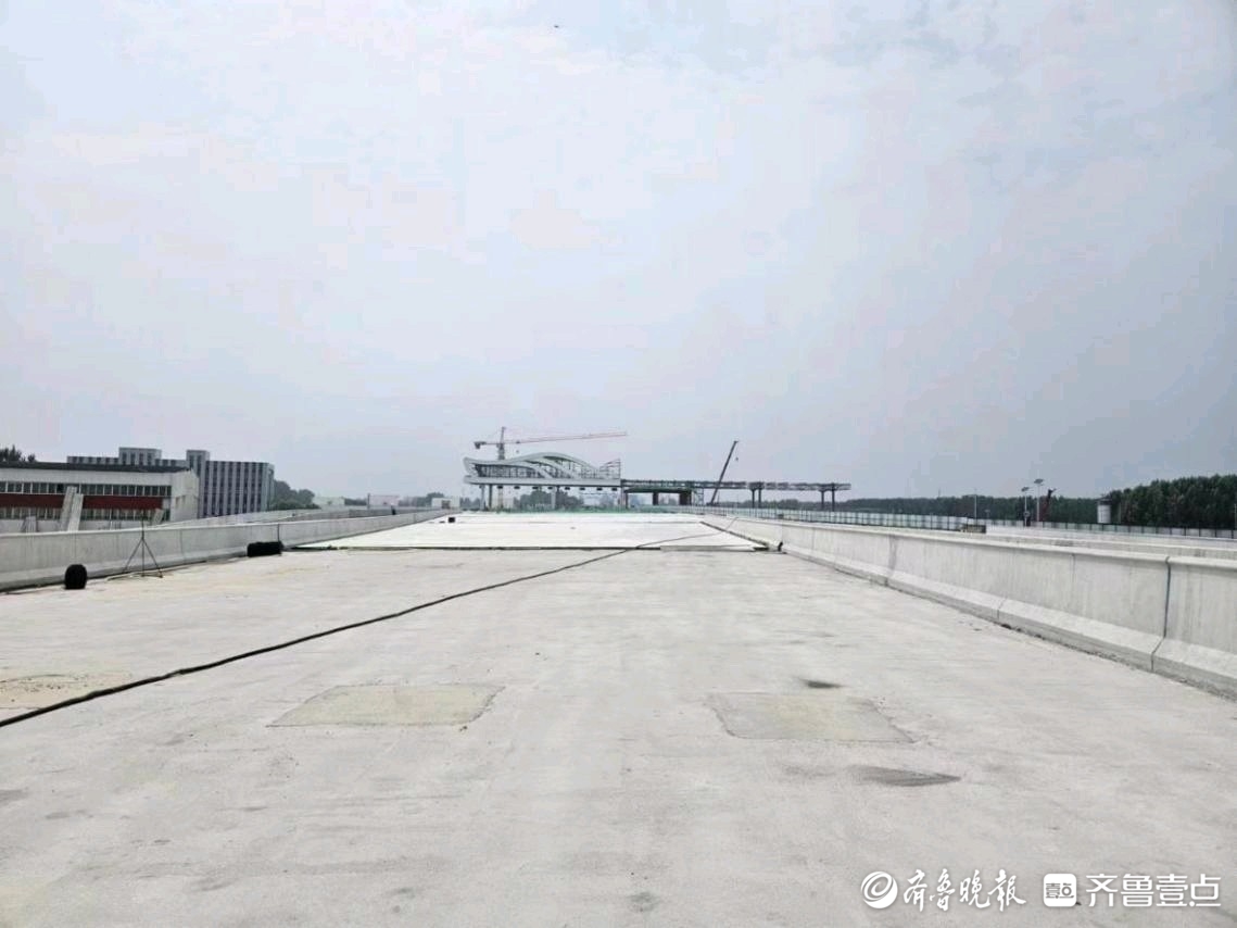 据了解,南主进出场高架桥是济南机场二期改扩建项目的重要交通配套基础设施,全长约1.6公里,主路双向10车道,设计时速80公里,辅路双向6车道,设计时速40公里,匝道单向2车道,采用先进桥梁建造技术和环保材料。自2023年3月开工以来,济南国际机场建设有限公司全体参建人员严格按照标准化施工要求,优化施工方案计划,合理调配人员、设备,克服了工期紧、道路导改频繁、多家施工单位交叉施工等难题,通过提前谋划、精准决策和科学管理,确保了工程高质高效推进、按照计划节点实现全线贯通。