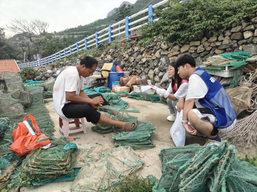 “碳净蓝岛”实践队对岛上渔民进行访谈 贾雨晴摄