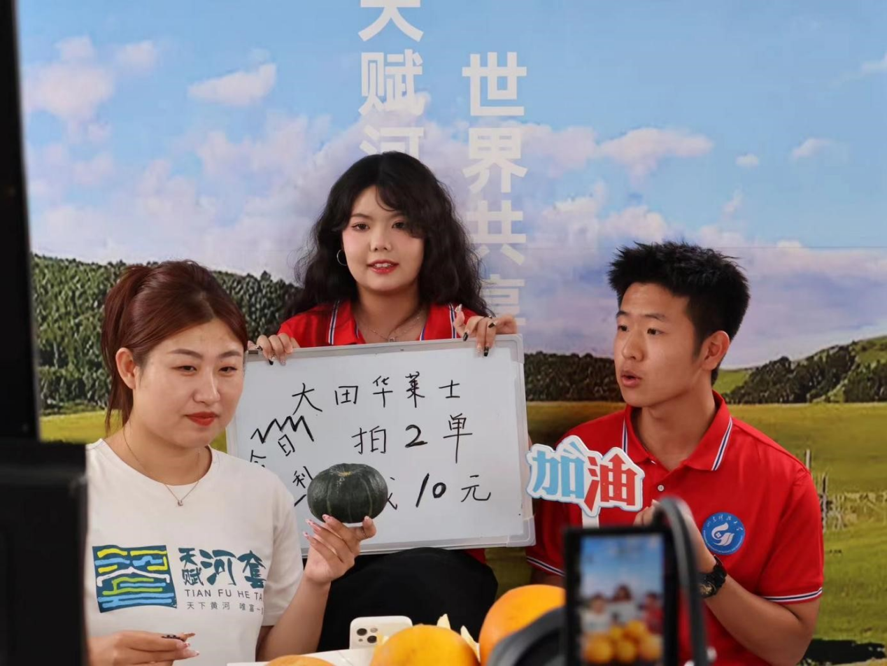 在走访社区的过程中,队员们了解到当地华莱士瓜和贝贝南瓜正处于大量上市阶段,当地瓜农面临产品价格低、农产品滞销困扰。当即与巴彦绿业实业(集团)有限公司合作,在天赋河套旗舰店直播间开启了线上助销农产品的公益活动。“贝贝南瓜,营养美味,好吃不贵”“直播间福利,拍两单立减10元”,通过生动的讲述和互动,当晚直播间的人气与销量均实现了显著提升,为当地农民带来了实实在在的帮助。