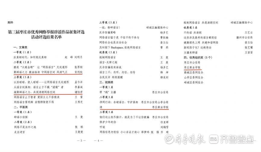 8月16日,第三届枣庄市优秀网络举报辟谣作品公布评选结果,枣庄职业学院融媒体中心团队创作的微电影《清》荣获视频类二等奖;宣传部(信息中心)教师宋利秋撰写的《聚辟谣之力 激浊扬清 守网络空间 风清气正》、教师褚怡君撰写的《凝聚辟谣之力 清朗网络空间》分别荣获文章类二、三等奖;学院再次荣获优秀组织奖。