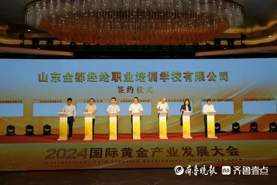 活动现场,全国首家非煤矿山实操培训学校-山东金都经纶职业培训学校与山东省委党校、中国矿业大学、达索析统、安百拓集团、赤峰吉隆黄金、金诚信公司围绕师资队伍建设、应急管理人才培养、实训基地共建、员工安全培训等进行合作签约,利用学校实训矿井、实操基地等培训资源,为黄金产业高质量发展提供人才保障和智力支持。