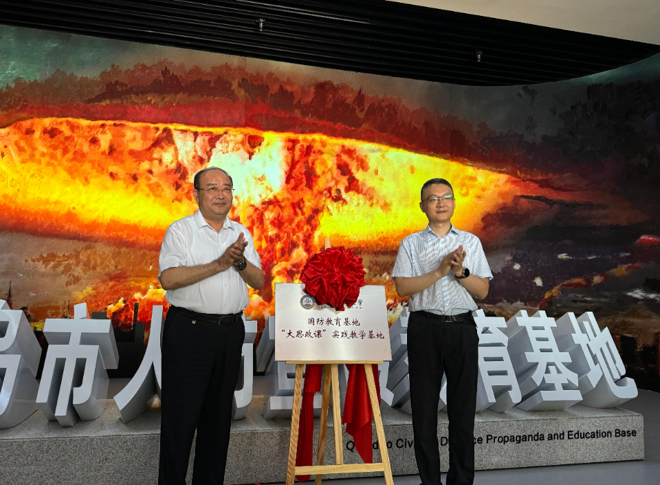9月5日上午,青岛科技大学与青岛市国防动员办公室合作共建国防教育基地、“大思政课”实践教学基地揭牌仪式在青岛市人防宣传教育基地举行。仪式上,青岛市国动办党组成员、副主任赵承桥与青岛科技大学党委副书记李勇共同为青岛科技大学国防教育基地、“大思政课”实践教学基地揭牌。