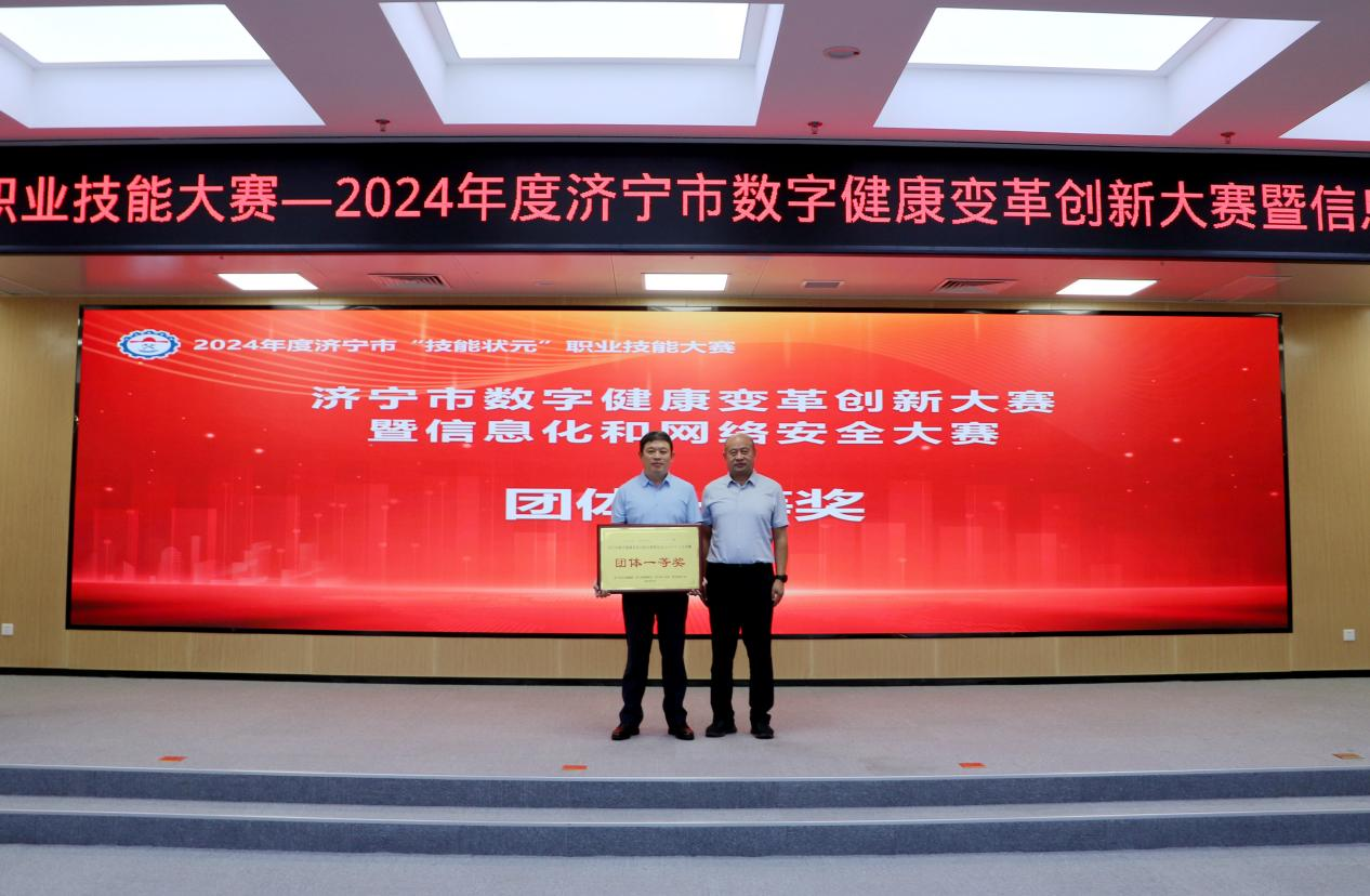 9月3日,由济宁市卫生健康委、市委网信办、市人力资源和社会保障局、市总工会共同主办的济宁市“技能状元”职业技能大赛——济宁市2024年度数字健康变革创新大赛暨信息化和网络安全大赛在济宁市公共卫生医疗中心举行。由山东省戴庄医院信息部主任郭勇带队,裔婷婷、钟乘鹏、李圣玉、常阳四位选手组队参加了本次大赛。经过艰苦卓绝的拼搏,该院荣获团队一等奖,李圣玉荣获个人特等奖,裔婷婷荣获一等奖。