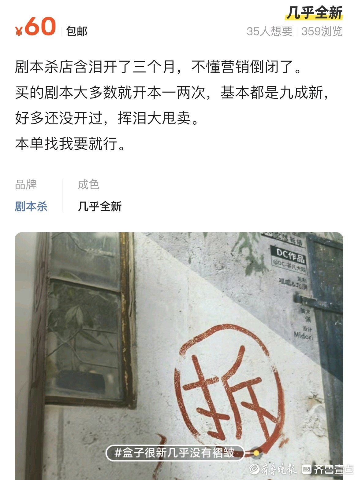在社交媒体平台上搜索“剧本杀”,有网友表示“对剧本杀的热情在下降”“附近的门店倒闭”......“三四年前,每到周末就约着朋友去‘开车打本’,现在已经有一段时间没去了,上次去还是去年暑假。”资深剧本杀玩家小张就是其中一员。在闲鱼等二手平台上,更是有“关店出剧本”的出售链接,根据数量,剧本销售价格从几十元到几百元不等。
