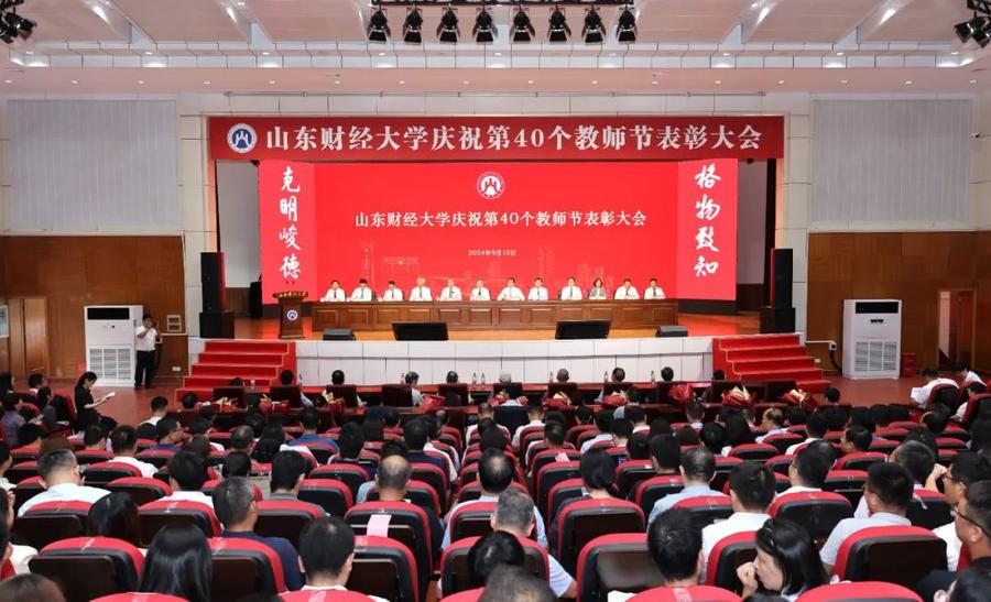 9月10日上午,山东财经大学庆祝第40个教师节表彰大会隆重举行。学校党委书记查玉喜,校长洪俊杰,党委副书记张培国、谢申祥,副校长张新、王敬政、赵奎皓,纪委书记、监察专员王玉花,副校长彭红枫、刘旻航,党委委员、组织部部长马玉林,党委委员、宣传部部长于洪良在主席台就座。