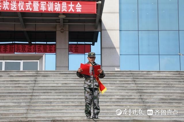 欢送仪式上,2022级机械制造与自动化一班杨国政作为新兵代表发言,全体新兵进行了宣誓。