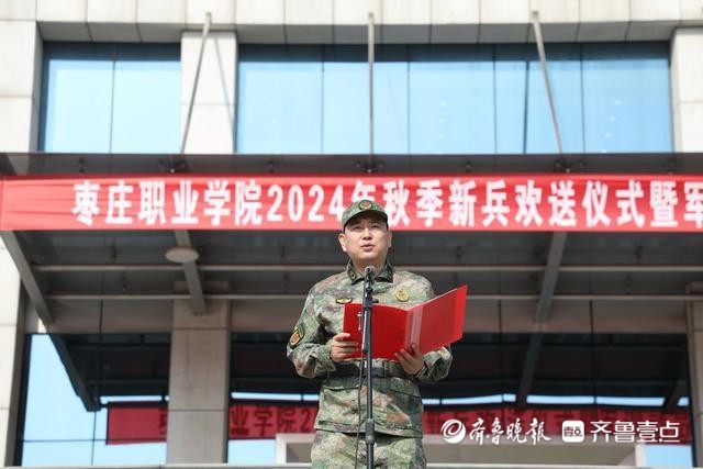 9月8日上午,2024年秋季欢送新兵仪式暨军训动员大会在工匠文化广场举行。枣庄职业学院党委委员、副院长王念,武警枣庄支队副参谋长李永富出席会议,学生工作处(团委)负责人主持会议,学院武装部同志、各系(院)学生管理主任、2024级新生辅导员、2024年秋季入伍新兵及全体2024级新生参加了大会。