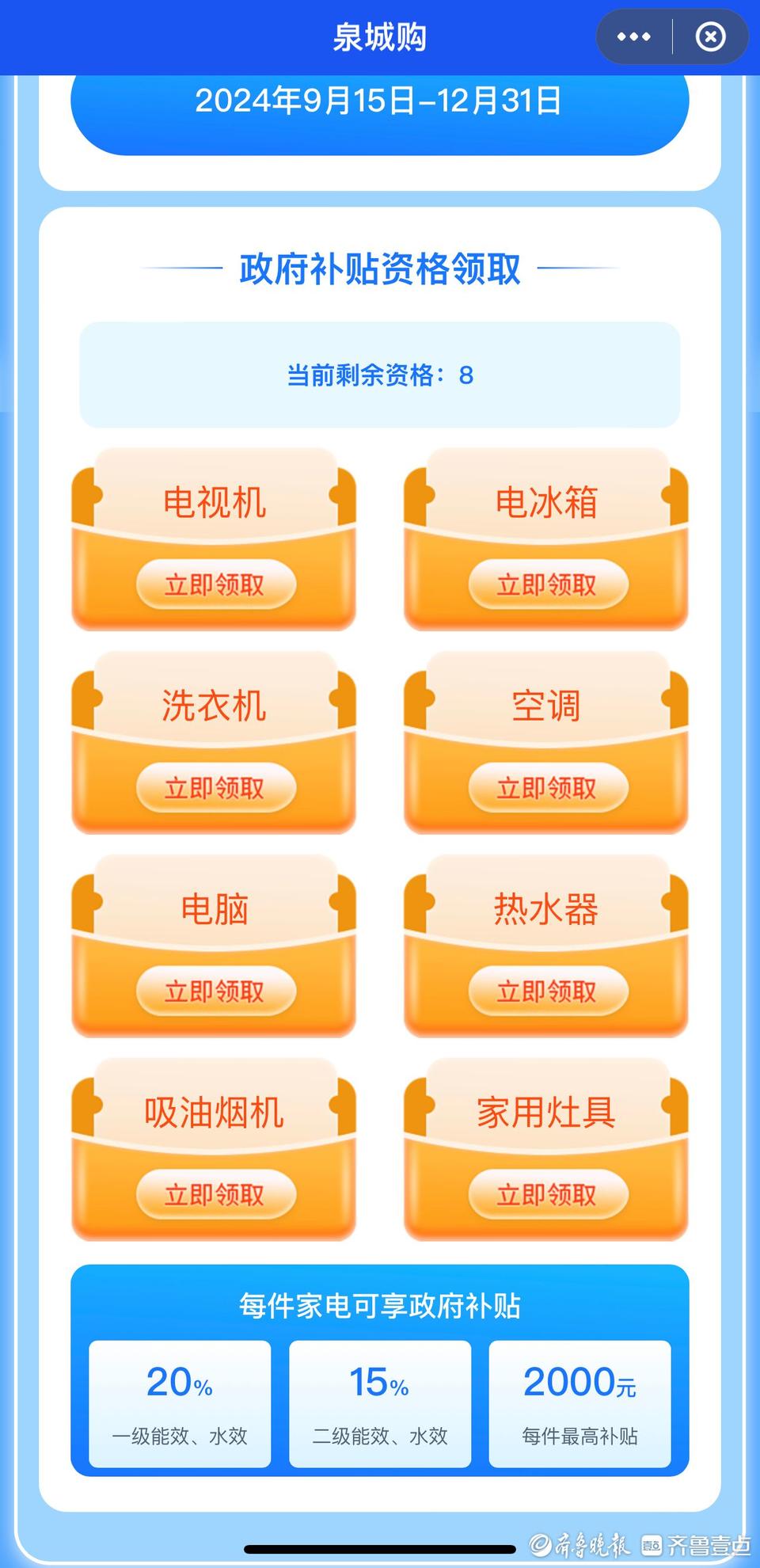 为深入贯彻国家发展改革委、财政部《关于加力支持大规模设备更新和消费品以旧换新的若干措施》安排,全面落实《商务部等4部门办公厅关于进一步做好家电以旧换新工作的通知》及《山东省推动家电以旧换新实施方案》要求,9月14日,济南市商务局等4部门研究发布了最新《济南市推动家电以旧换新实施细则》(以下简称《实施细则》),于9月15日,全面启动我市新一期家电以旧换新补贴活动,活动将持续到今年的12月31日。