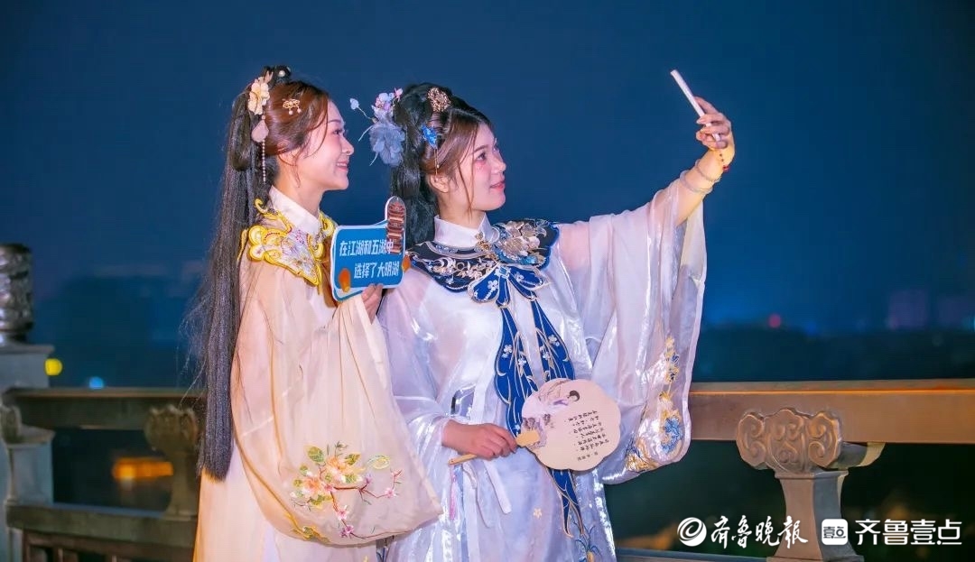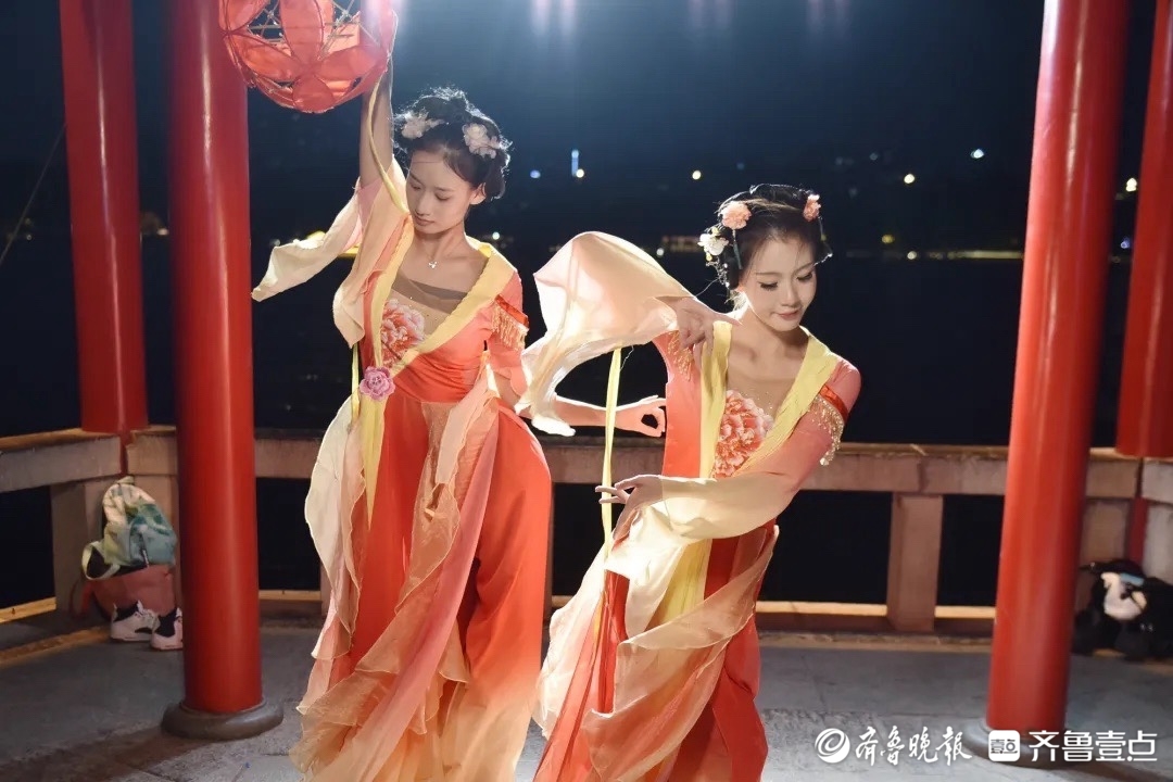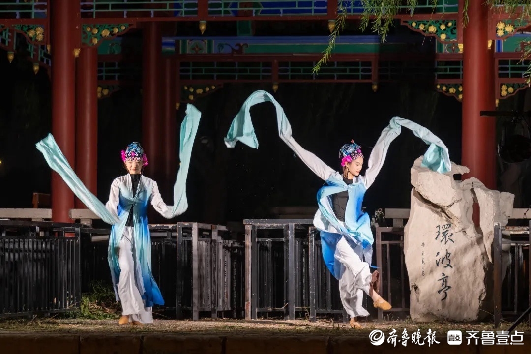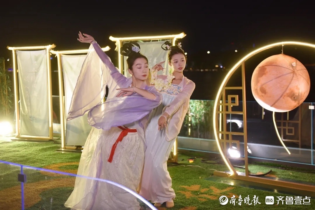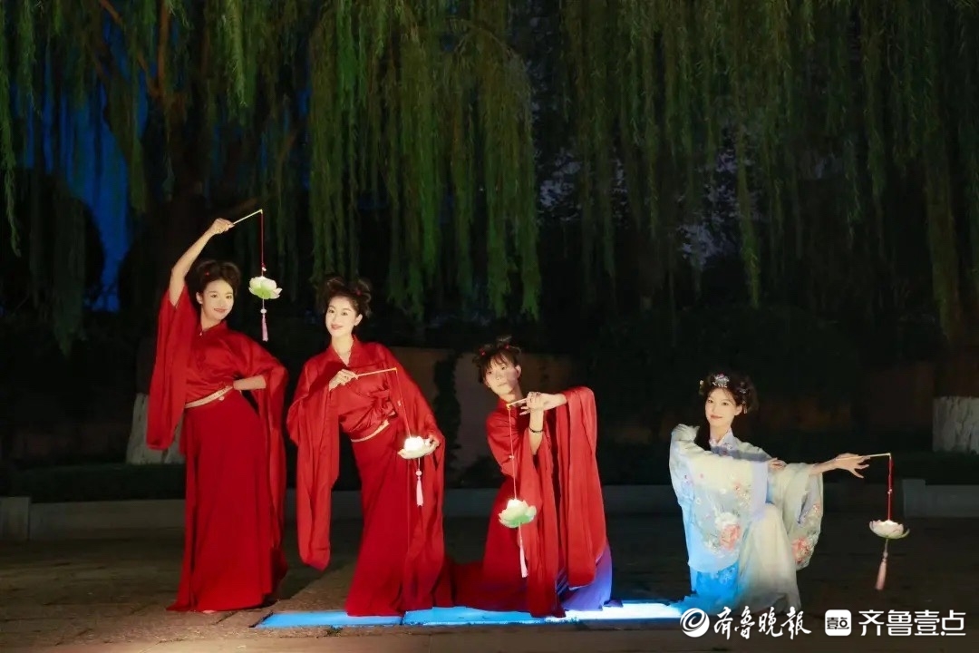 同时,“明湖花月夜·澜影见月圆”情景演艺在中秋期间为大家带来了一场文化盛宴。演艺结合乾隆夏雨荷、莲鼓荷衣、非遗滚灯等文化元素,在大明湖历下亭、湖心岛、九曲亭、翠柳屏岛等沿湖亭台亲水区域,推出《寻忆雨荷》《明湖泉韵》《月夕花朝》《清荷云裳》四大主题篇章,让市民游客在亲泉、品泉、赏泉中,体验泉水文化,感受泉城魅力。