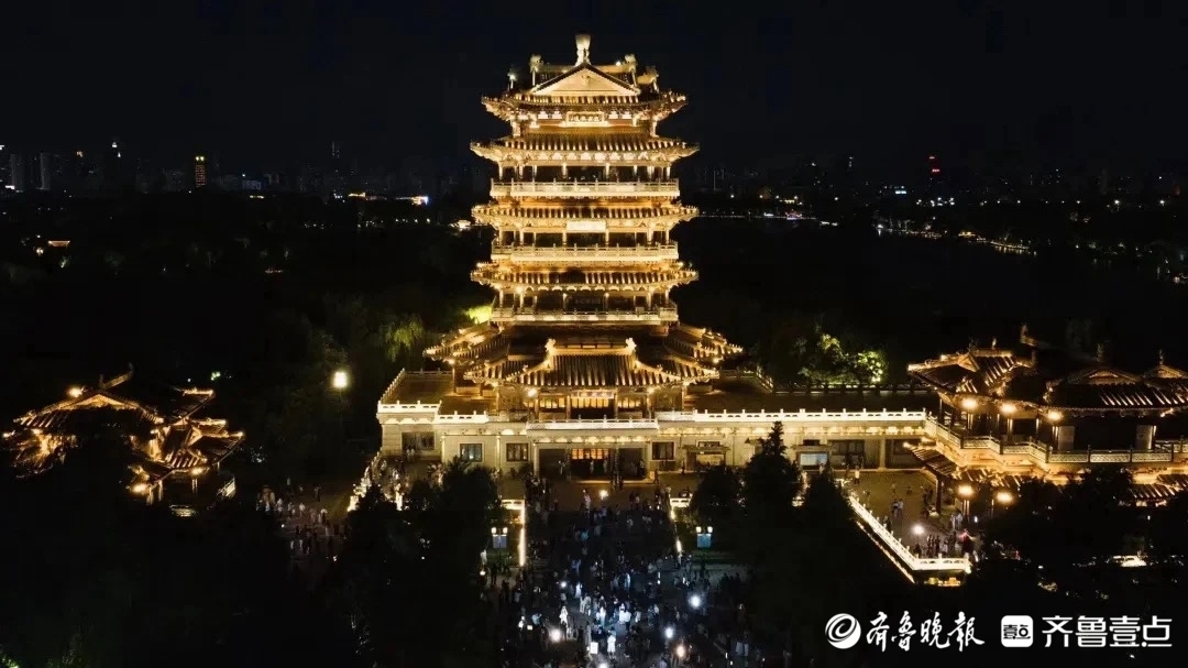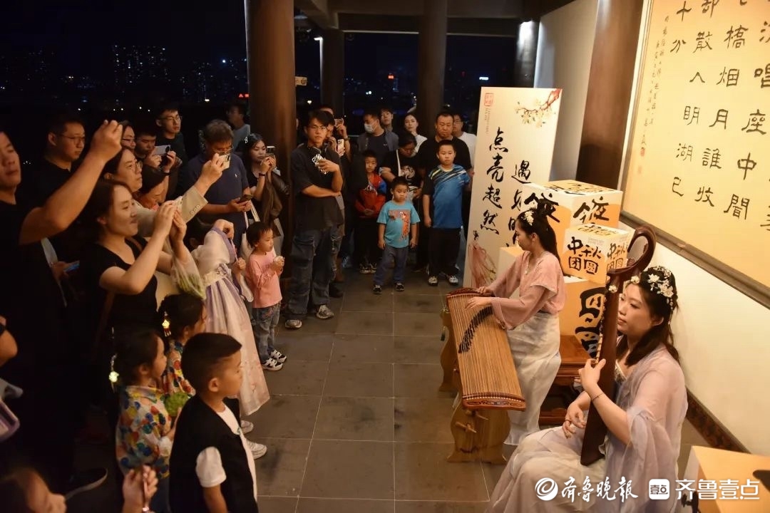 中秋假期,第一泉景区活动丰富多彩、热闹非凡。节日限定“宠粉”福利“超然楼赏月”,游客夜登超然楼,在古韵悠扬的旋律中登高望远,明湖赏月,沉浸式感受湖光山色、城市夜景和佳节氛围。现场的古风乐器演奏吸引了大量游客,一段段与“月亮”相关的古风旋律引得阵阵掌声,给广大市民游客带来了前所未有的中秋赏月体验。