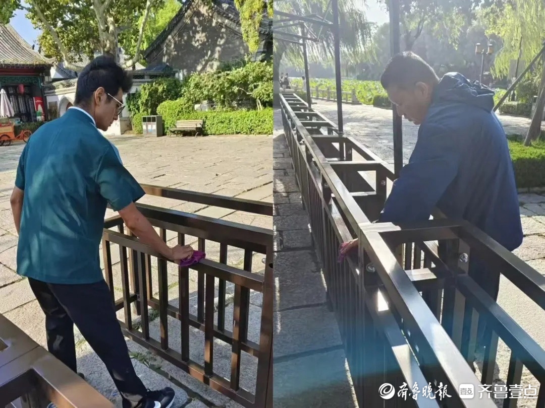 中秋假期,一线各班组工作人员提前到岗,打扫运营区域卫生,为市民游客营造干净整洁的游览环境。