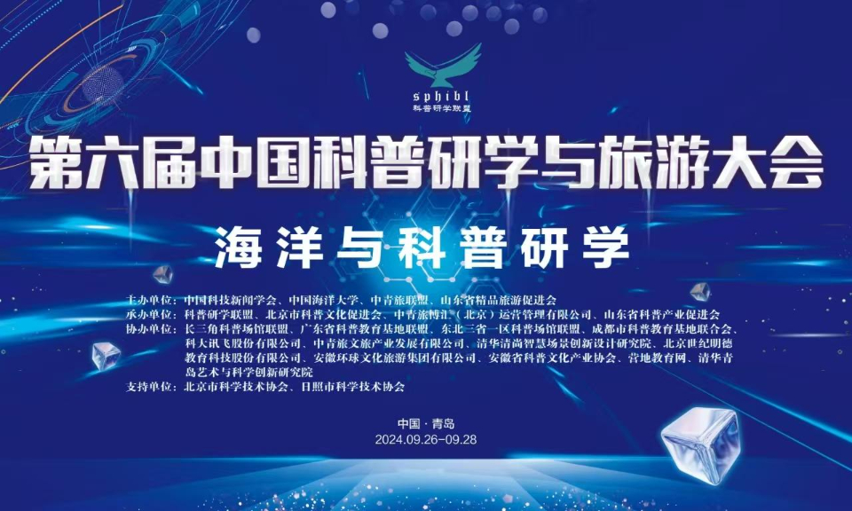 9月26日-28日,第六届中国科普研学与旅游大会在青岛召开。本届大会由中国科技新闻学会、中国海洋大学、中青旅联盟等单位共同主办。大会秉持“以文塑旅,以旅彰文”的理念,致力于搭建起研学与旅游深度融合的桥梁,旨在推动科普教育事业与旅游产业的繁荣发展。大会以“海洋与科普研学”为主题,深入探索海洋资源在研学与旅游中的利用。来自全国各地近300名科普研学及旅游行业代表参加了会议。